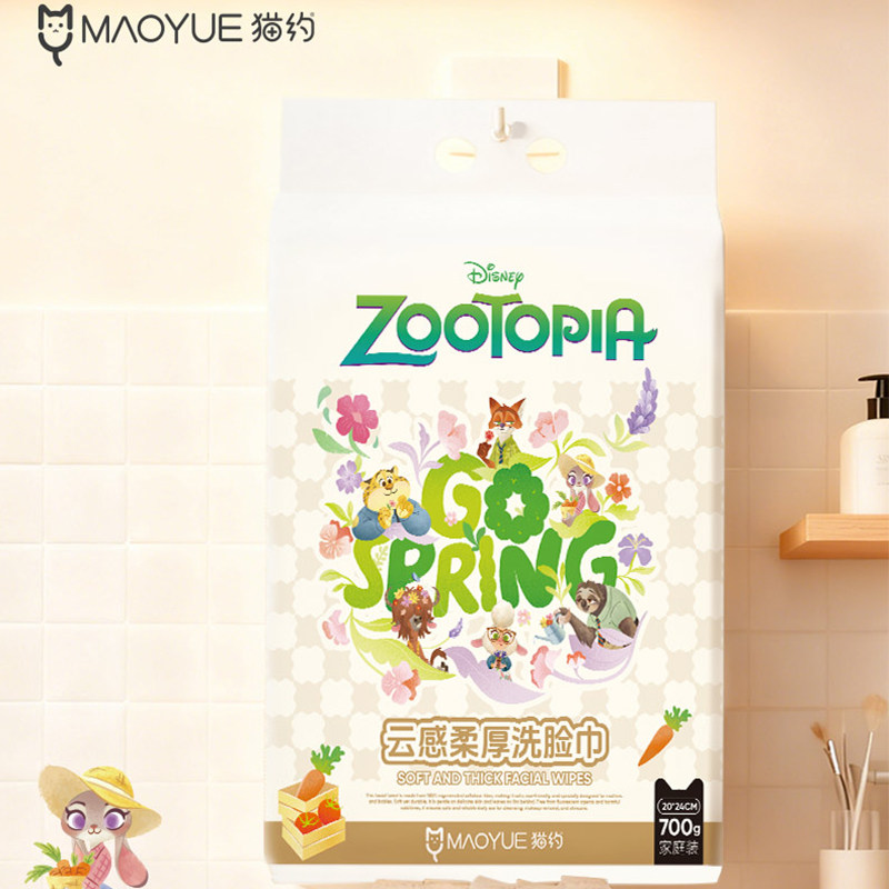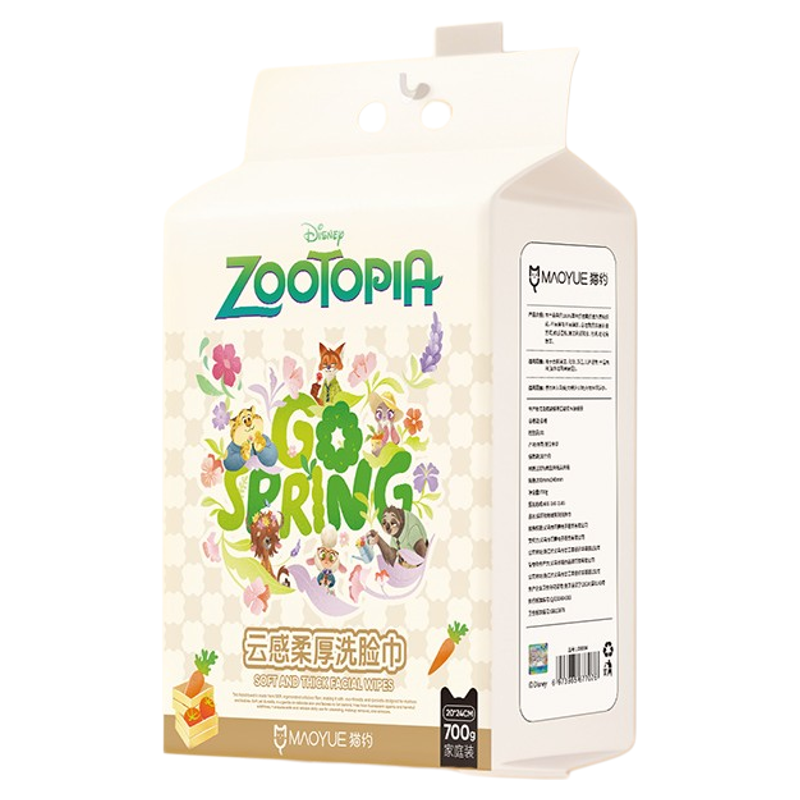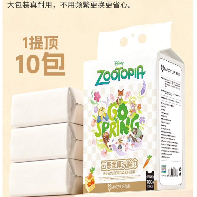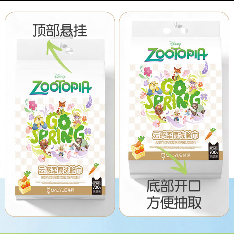 迪士尼疯狂动物城700克家庭装悬挂式一次性洗脸巾棉柔巾洁面毛巾