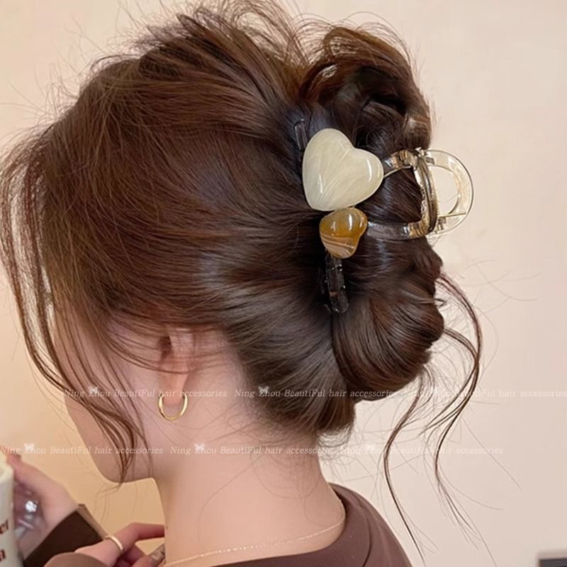 爱心花朵猫咪半扎发夹头饰女后脑勺中号盘发抓夹鲨鱼夹高级感发卡