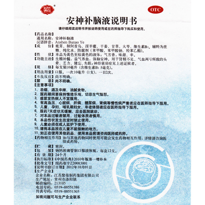 聚荣安神补脑液12支/盒正品官方旗舰店改善睡眠头晕健忘神经衰弱