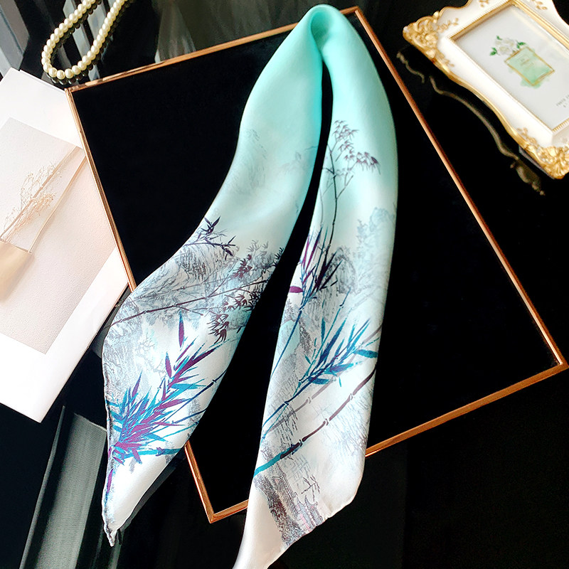 竹墨清风真丝丝巾女春秋百搭杭州丝绸中国风围巾头巾送妈妈小领巾
