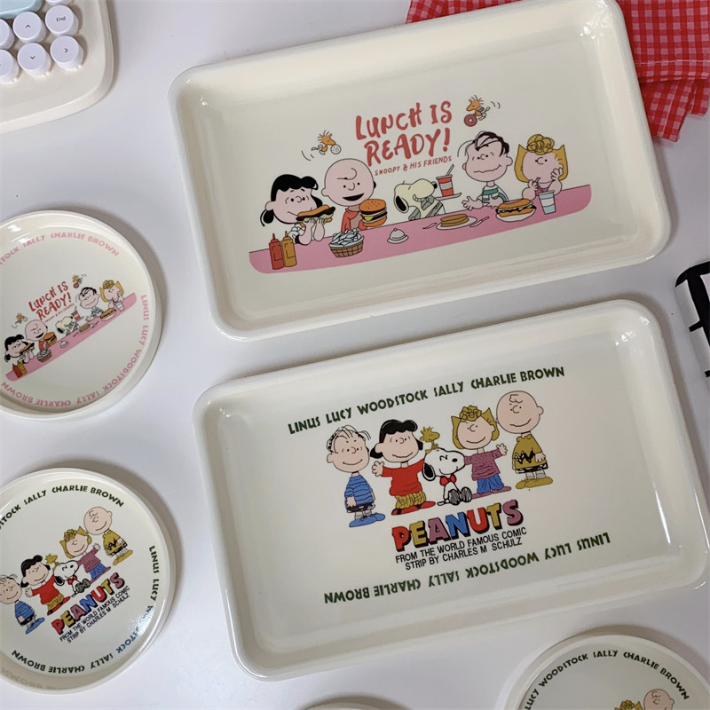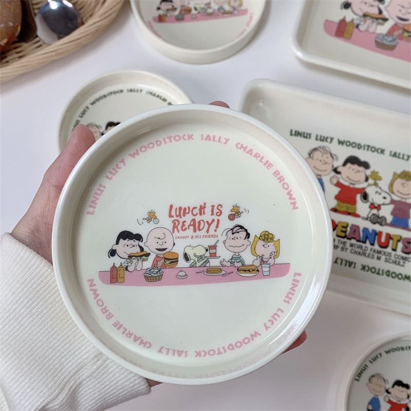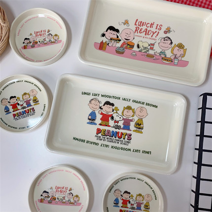 FunLife生活馆 可爱卡通史努比密胺托盘少女心早餐盘水果盘甜品盘