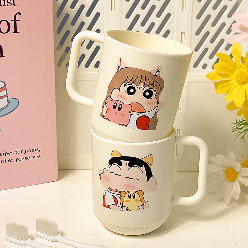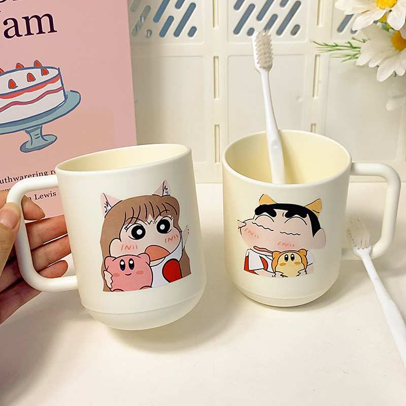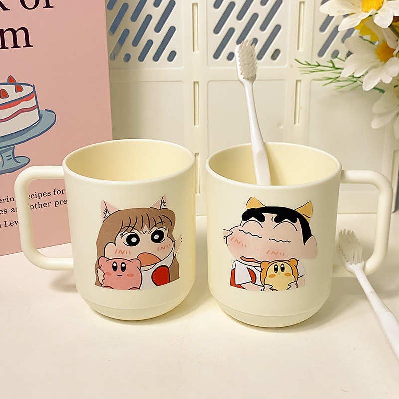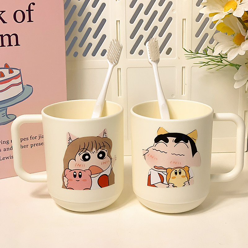 可爱双人卡通漱口杯新款动漫小新防摔加厚洗漱杯家用高颜值刷牙杯