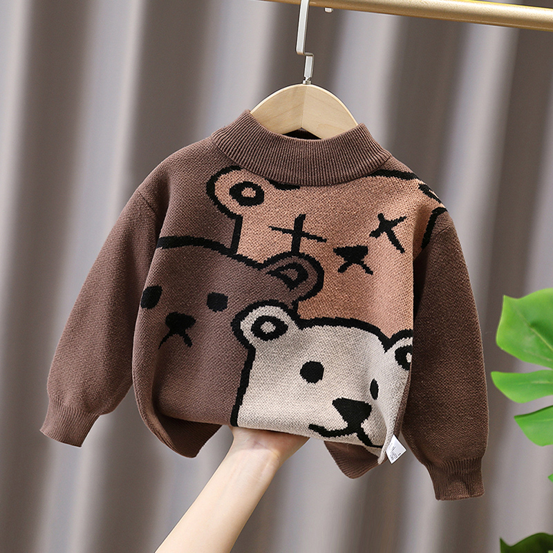 儿童可爱卡通半高领毛衣男女童2025秋冬装宝宝小熊针织衫小童线衣