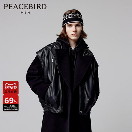 太平鸟男装 PU皮马甲时尚潮流秋冬季休闲时尚机车背心外套男