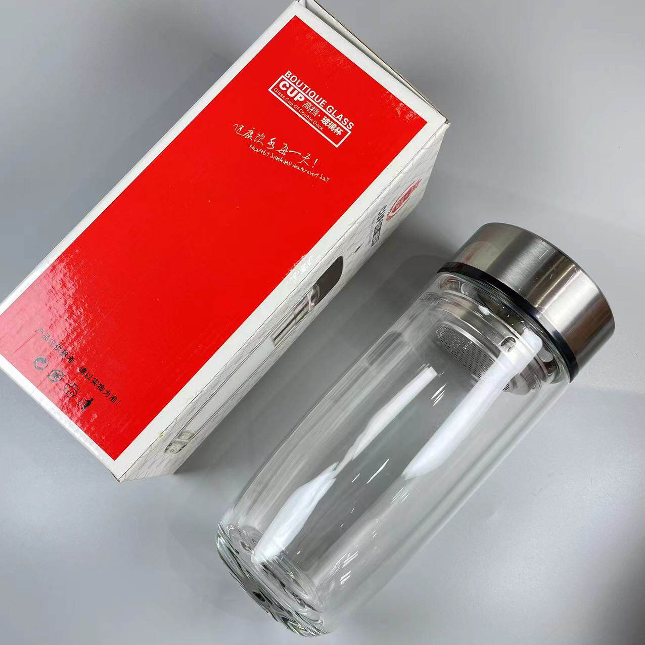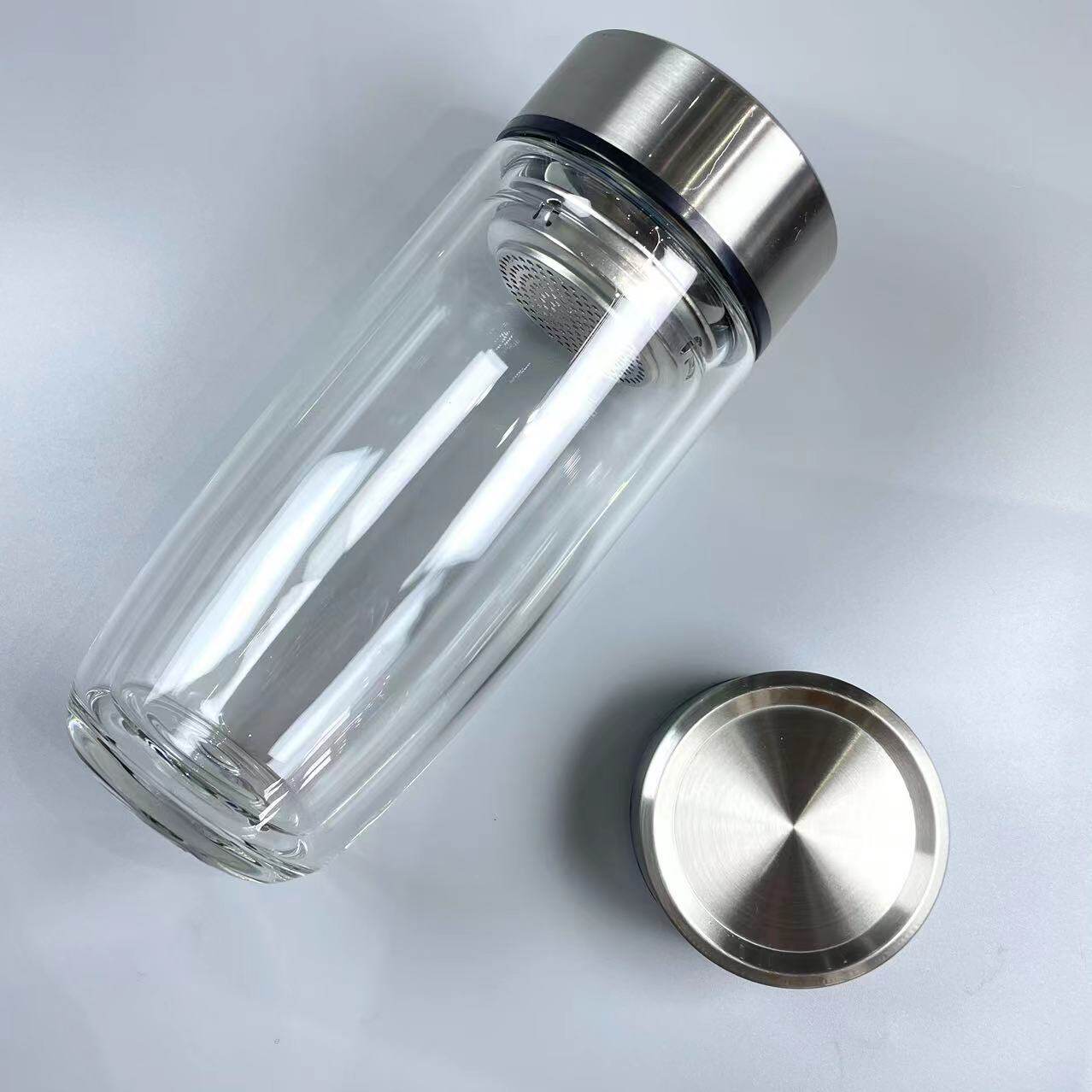 2635双层鹅蛋玻璃大肚泡茶水杯定制订做杯子小礼品广告不锈钢杯盖