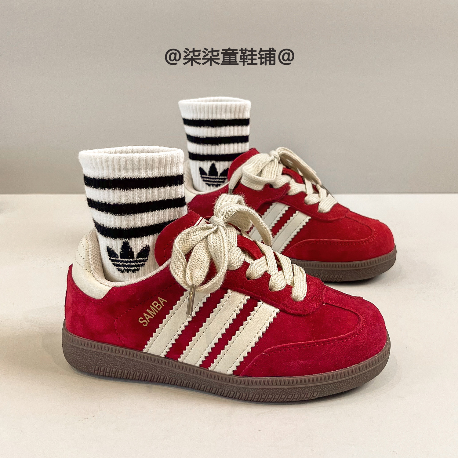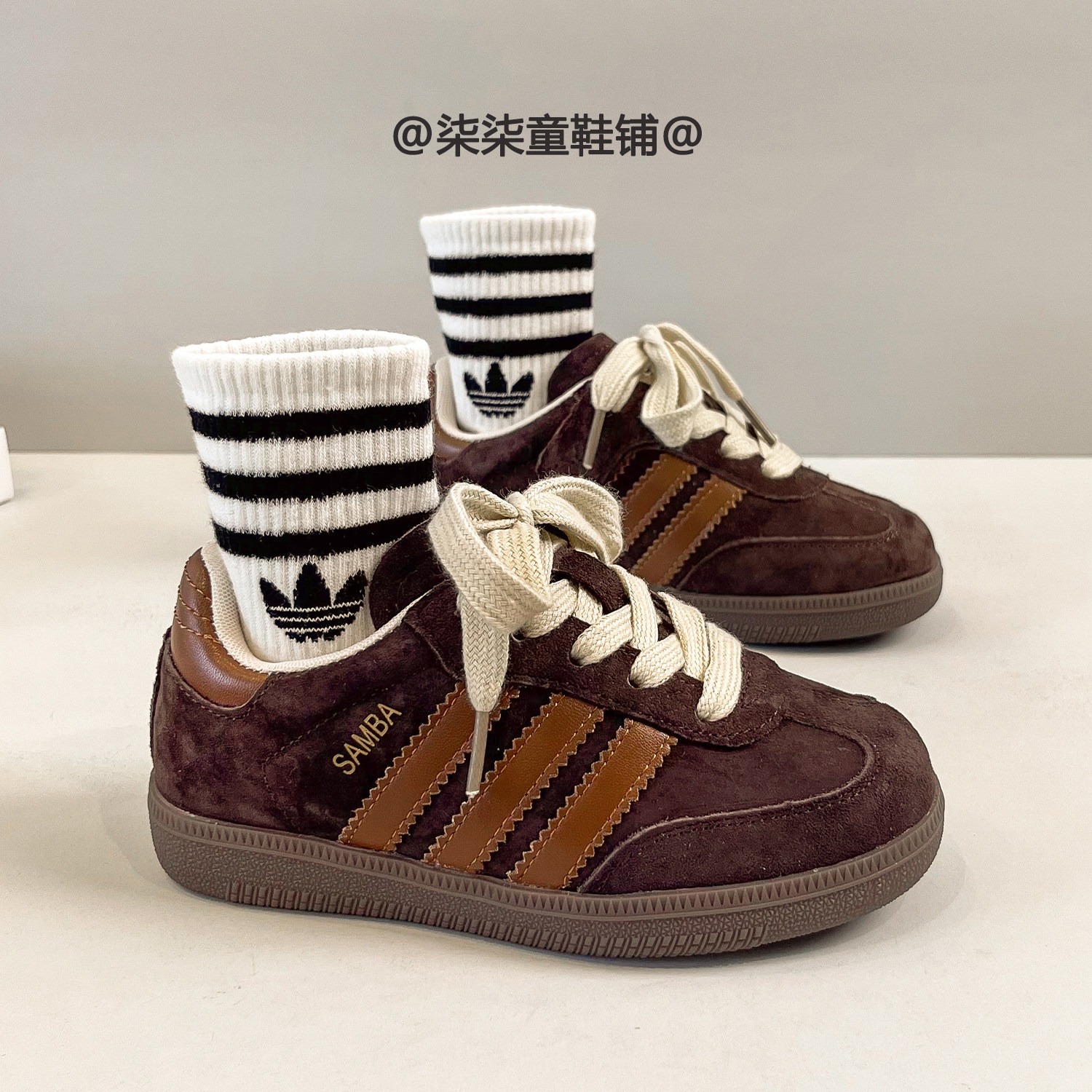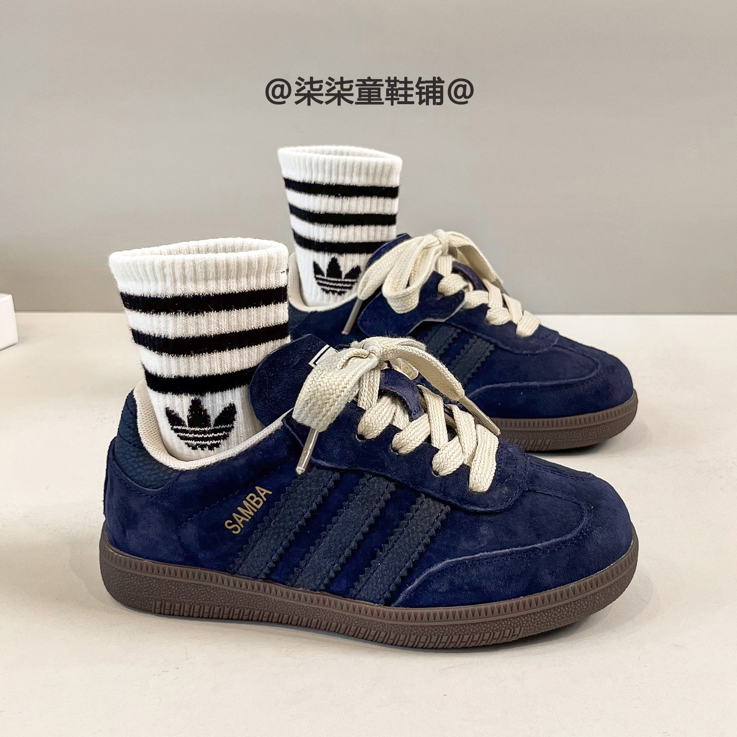 新款蓝色真皮德训鞋儿童2025春秋季女童休闲鞋板鞋男童户外运动鞋