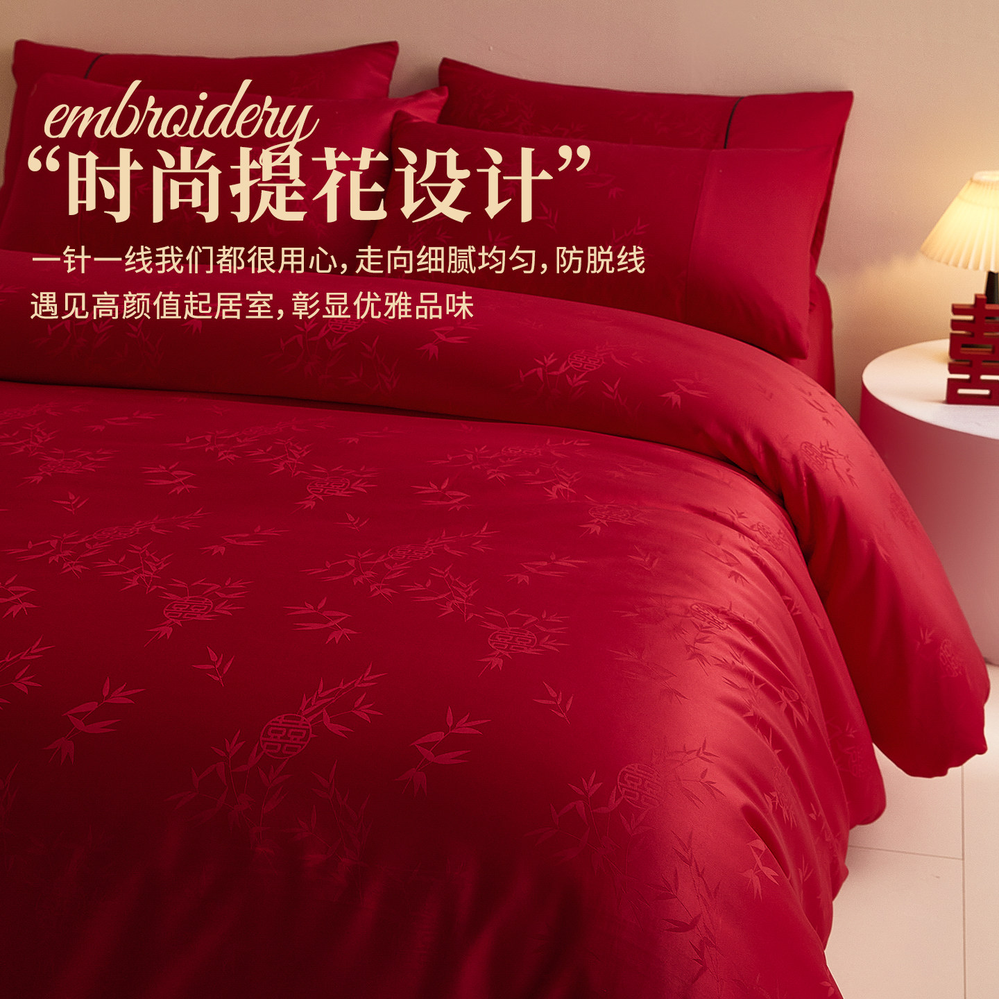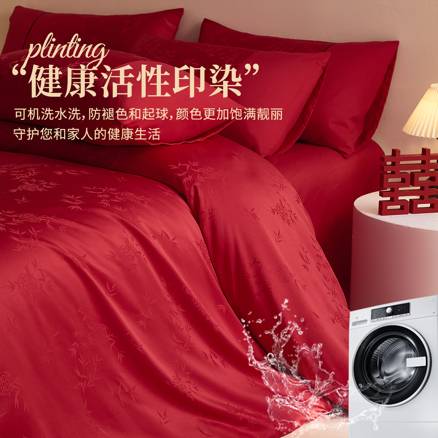 新中式水洗棉婚庆四件套纯棉喜庆被套床单全棉红色陪嫁床上用品