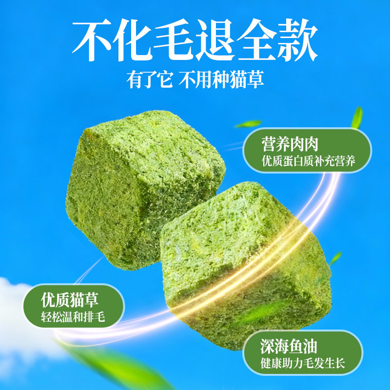 俏贝丽猫草粒冻干桶装零食猫咪化毛球专用鸡肉粒猫草棒洁齿磨牙