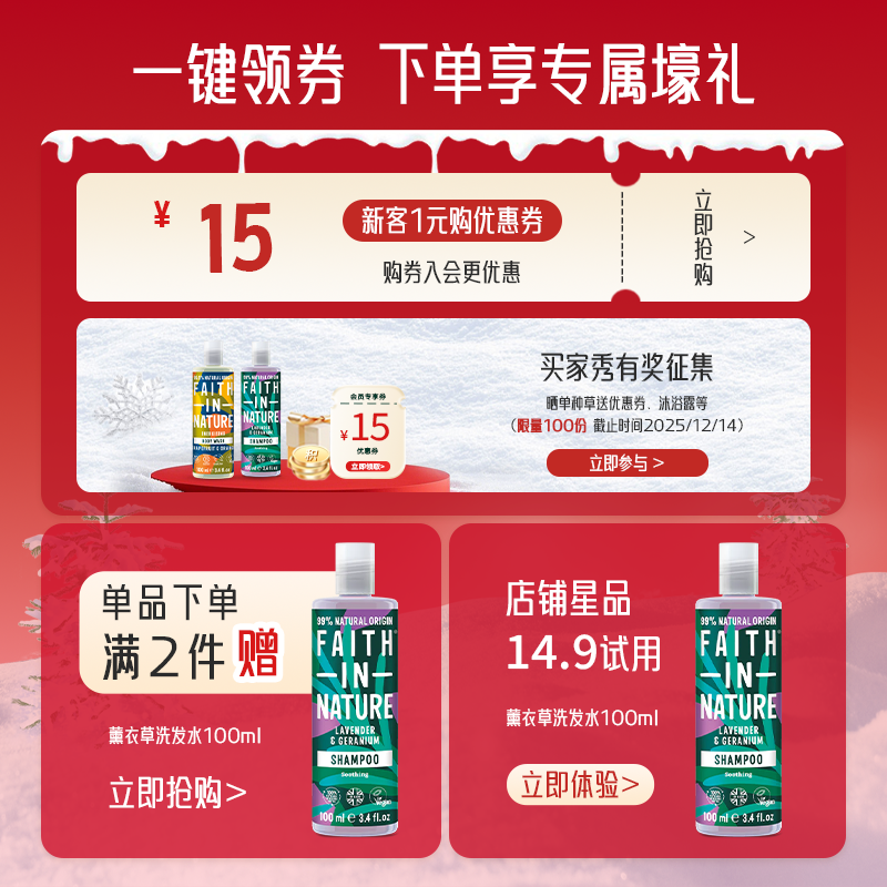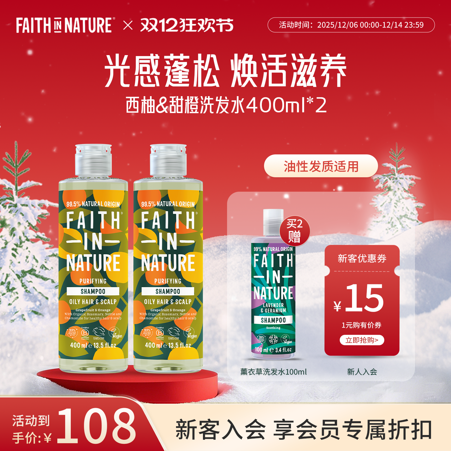 FaithInNature进口西柚甜橙洗发水无硅油控油蓬松湿洗发露清爽香