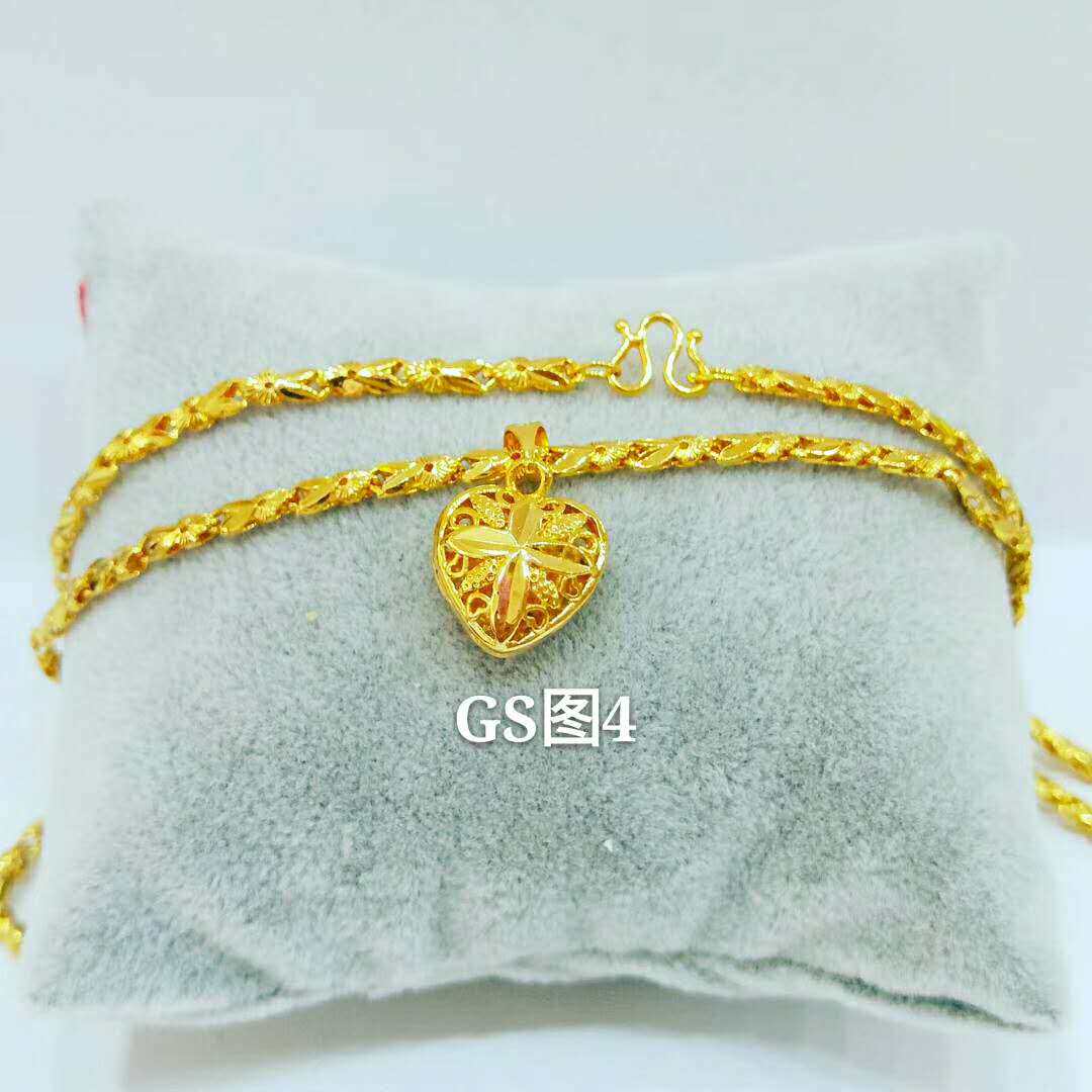 越南沙金桃心形吊坠镀金项链