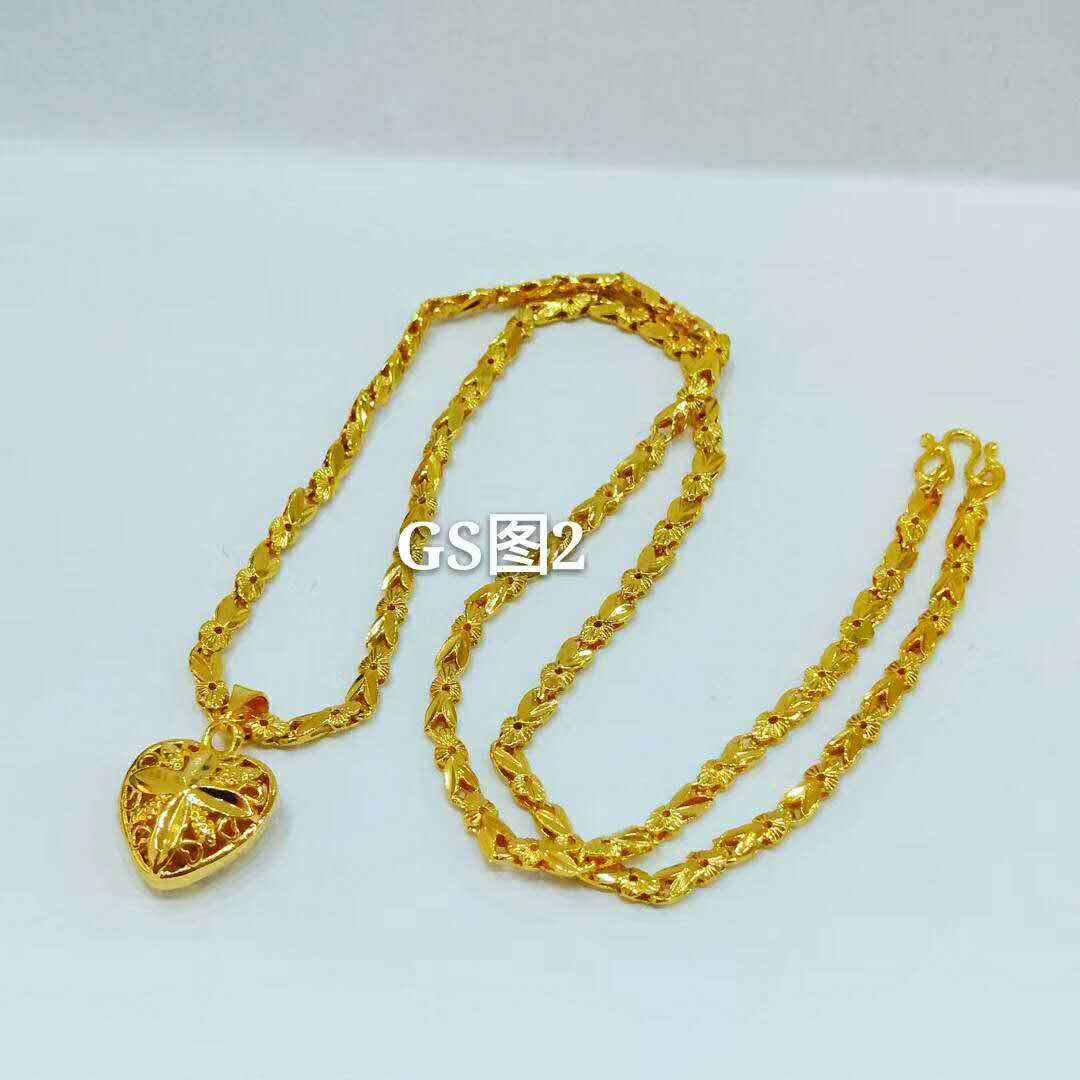 越南沙金桃心形吊坠女仿真黄金色锁骨链女久不掉色镀金项链首饰