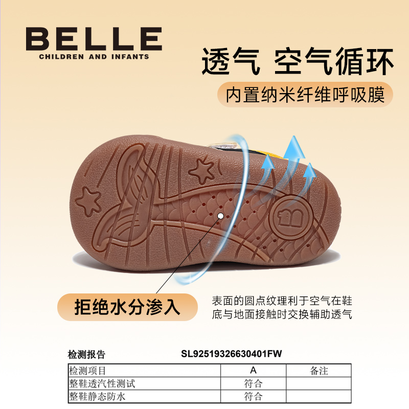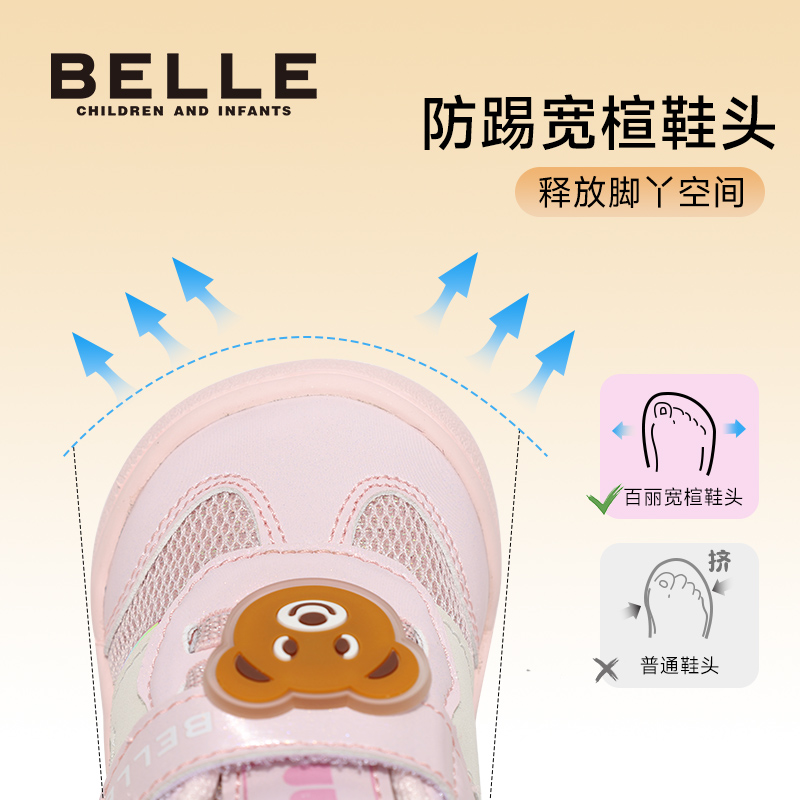 百丽童鞋2025年秋季新款男女童萌趣小熊学步鞋宝宝鞋软底防踢鞋