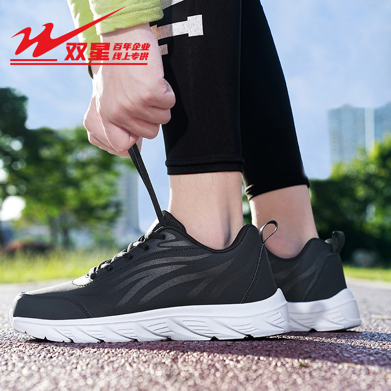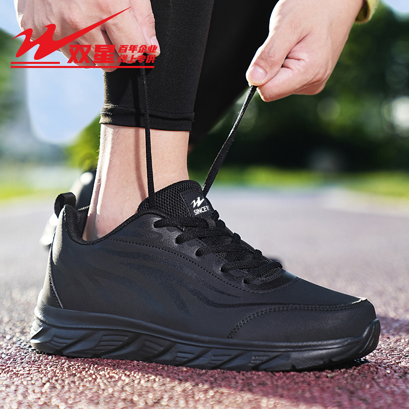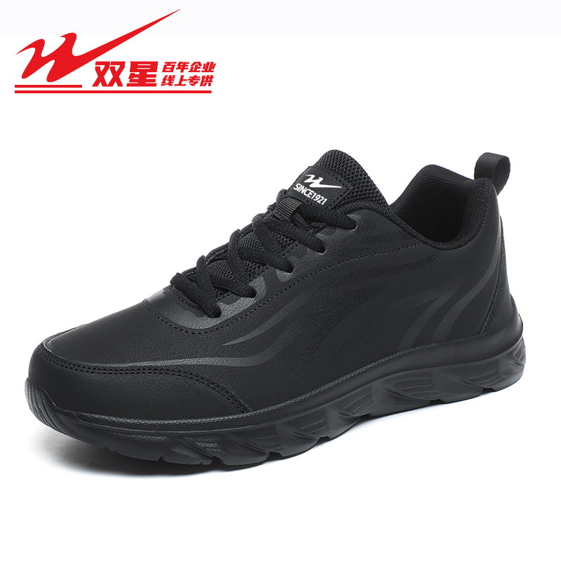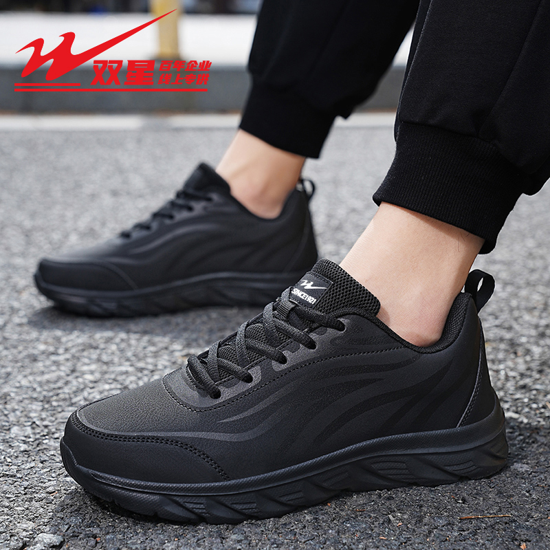 双星男鞋断码皮面防水黑色运动鞋防滑男士透气休闲工作鞋厨师鞋子