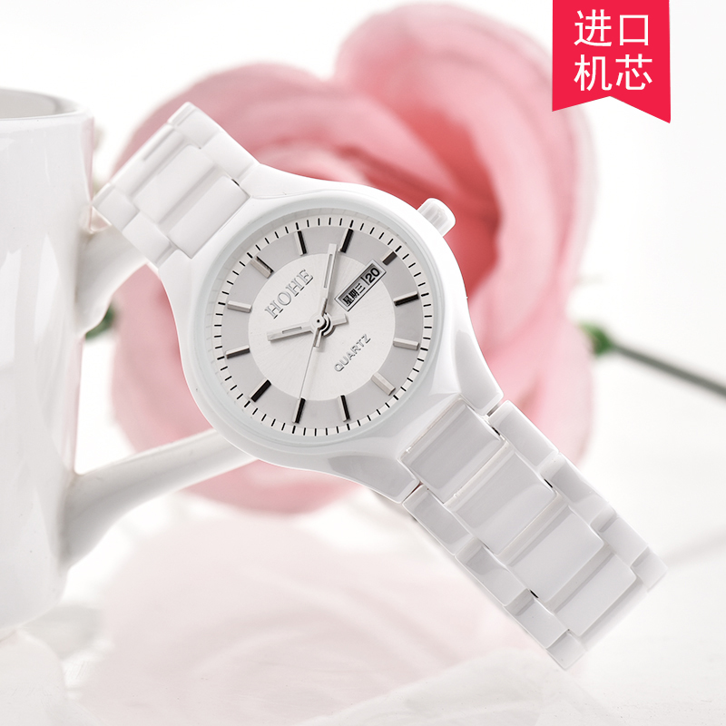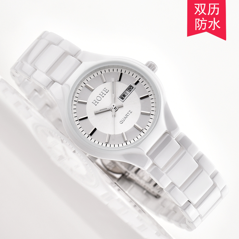 正品手表 女士陶瓷双历防水夜光时尚休闲石英表 超薄简约复古女表