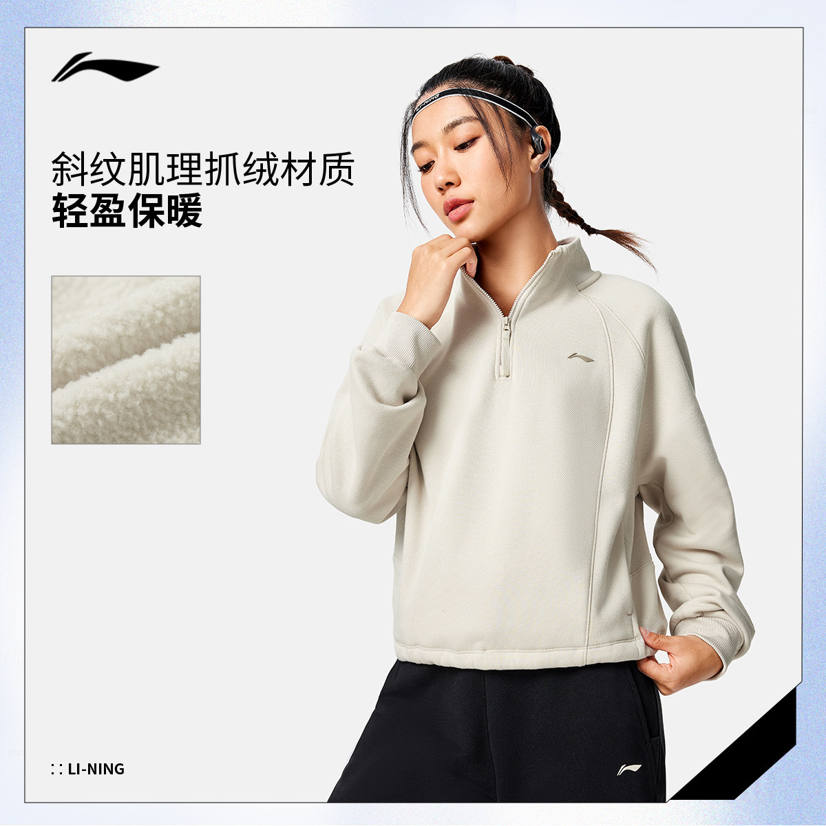 李宁卫衣女士冬季官方新款加绒加厚长袖宽松半拉链上衣保暖运动服
