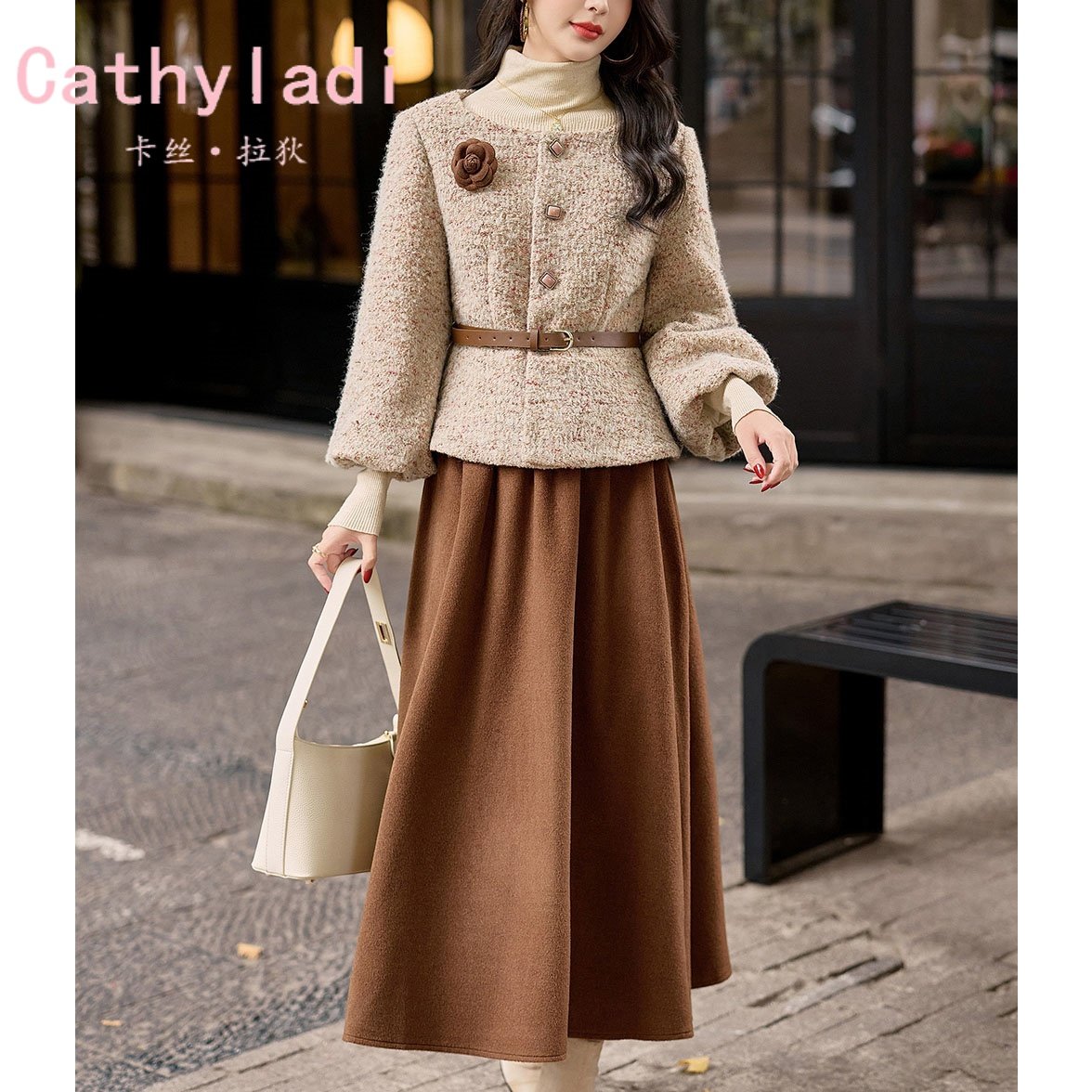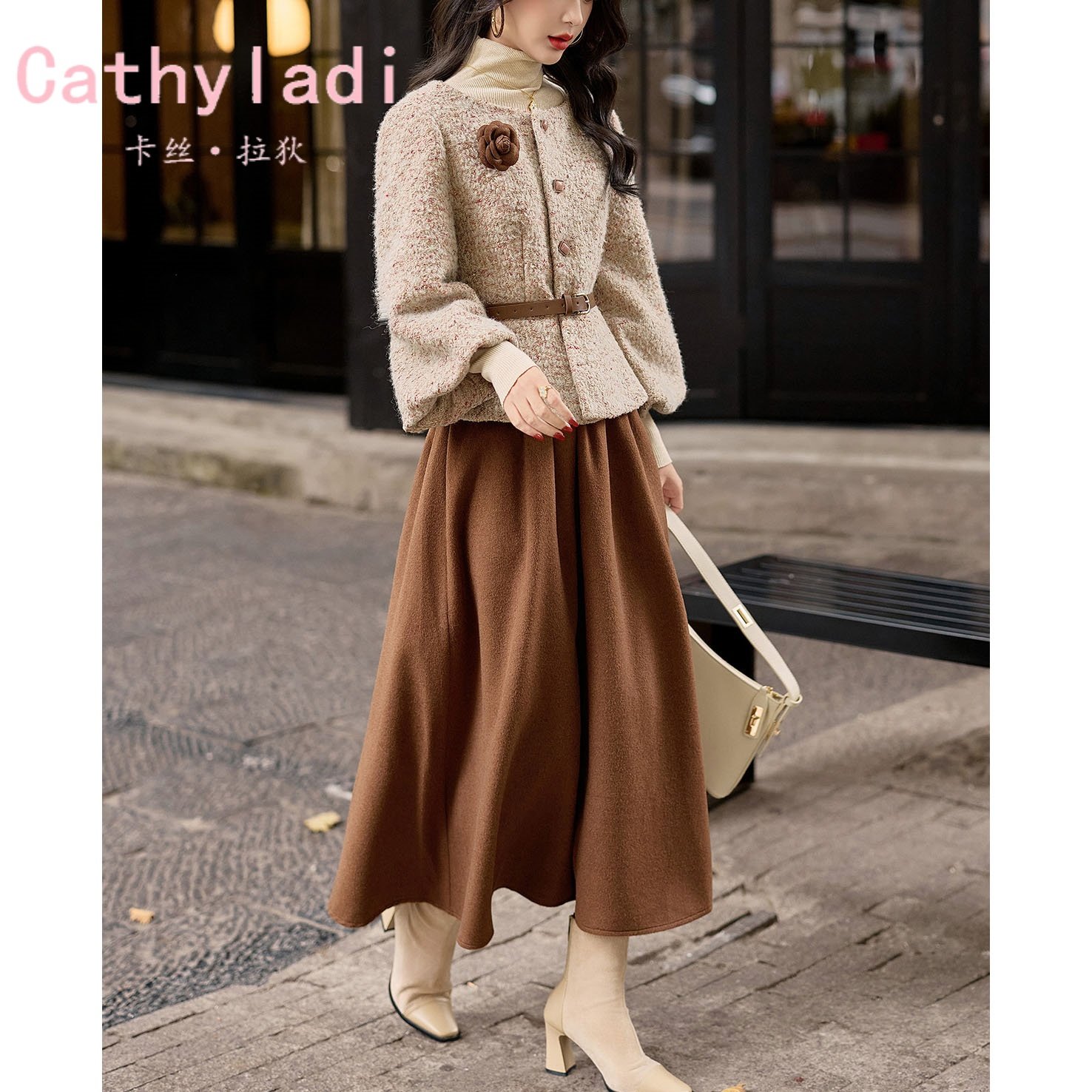 CATHYLADI小香风复古气质套装2025秋冬新款洋气外套半身裙两件套