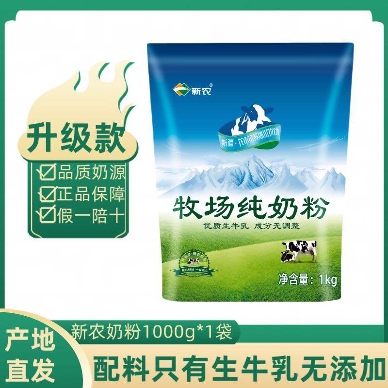 新疆直发新农全脂奶粉1000g袋学生青少年成人营养中老年人牛奶粉