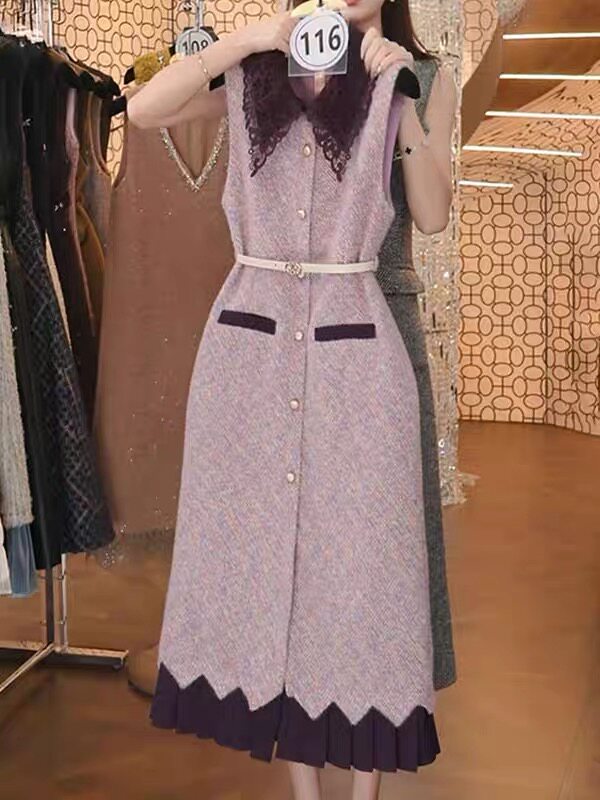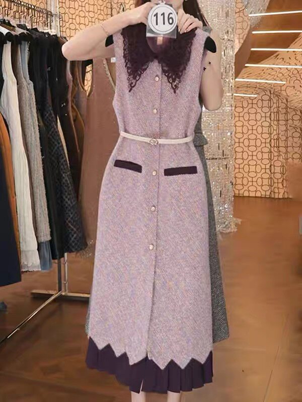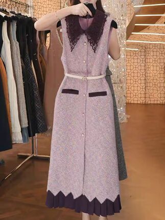 高级感气质名媛方领无袖背心裙2026冬季新款轻奢洋气潮流显瘦裙子