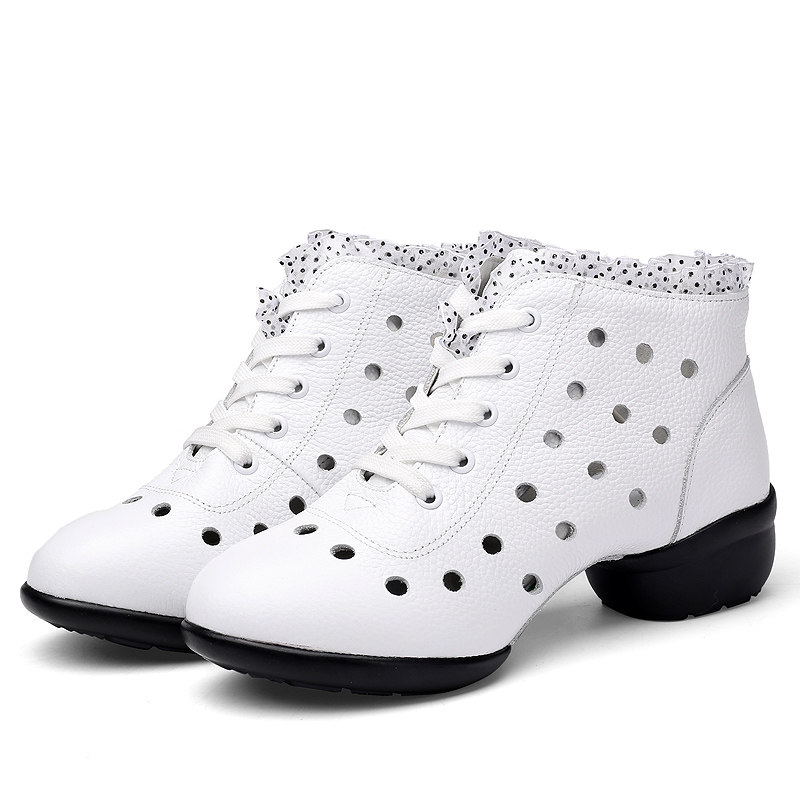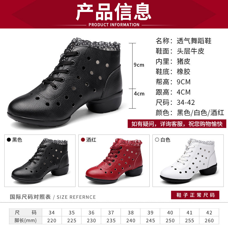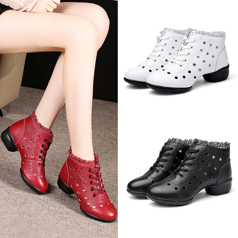夏季广场舞女鞋真皮跳舞鞋女软底水兵舞鞋透气镂空中老年舞蹈鞋