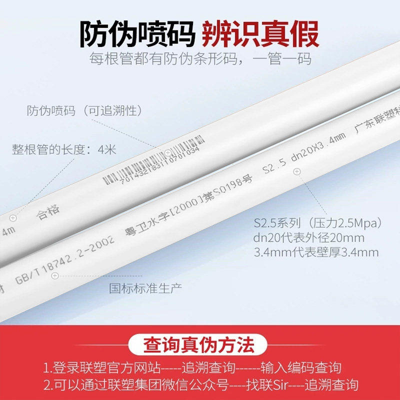 联塑ppr给水管热熔配件家装自来水管25冷热水管4分20 家用暖气管