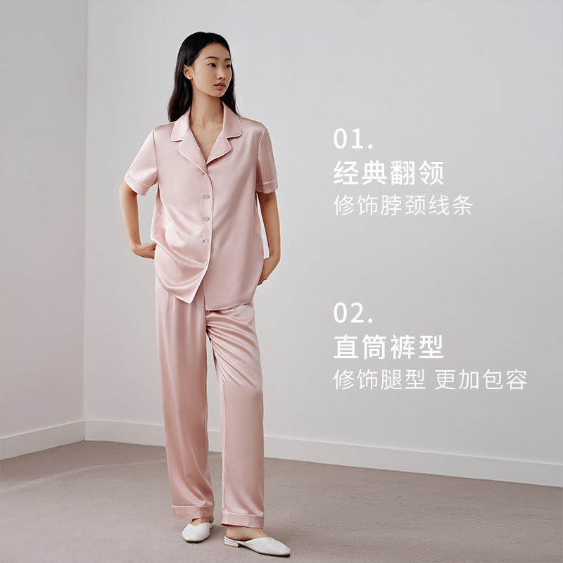 【凉感真丝】金三塔重磅真丝睡衣女100%桑蚕丝短袖长裤家居服礼物
