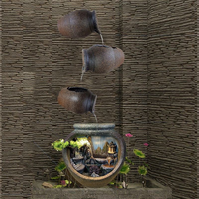 DIY自创流水墙造景贴墙挂壁仿陶流水罐鱼池鱼缸循环水幕墙户外庭