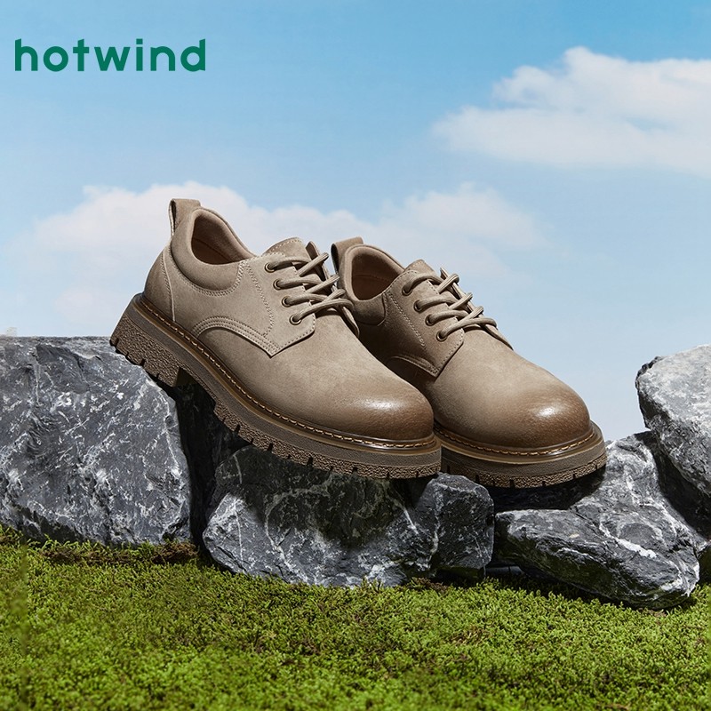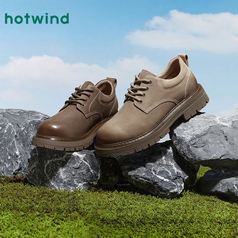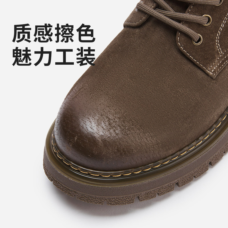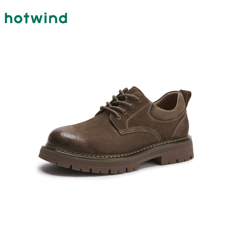 热风男鞋2025年秋季新款男士休闲鞋系带工装鞋圆头复古大头鞋子