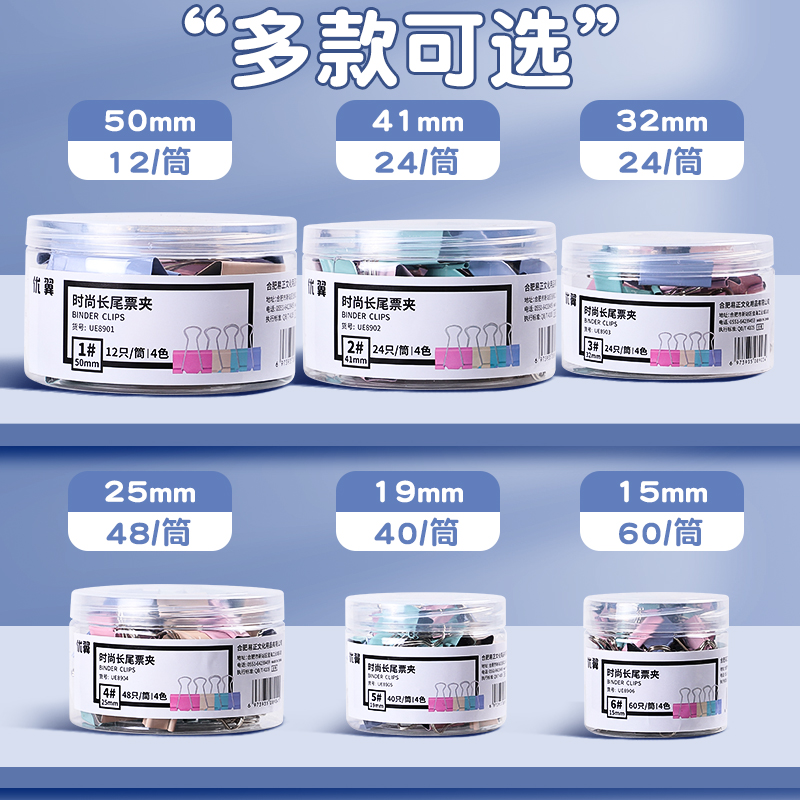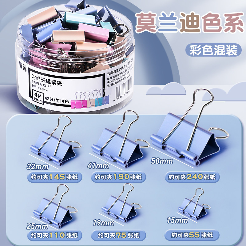 长尾夹燕尾夹夹子办公用品彩色金属票据夹小号文具大号资料夹子分类长尾票夹收纳食品照片创意试卷强力铁夹