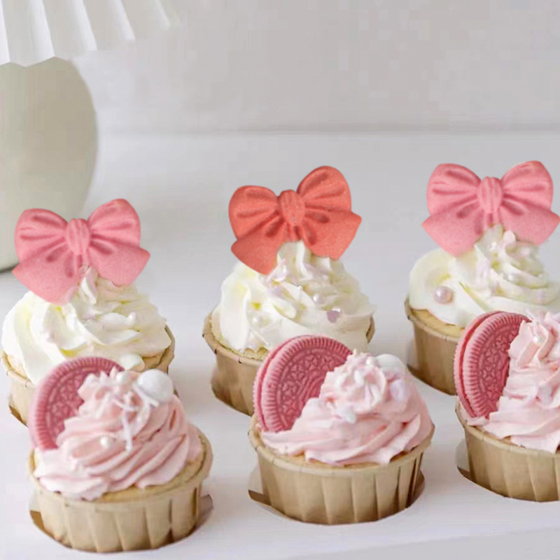 粉色红色大蝴蝶结装饰饼干生日节日蛋糕烘焙纸杯甜品搭配插件摆件
