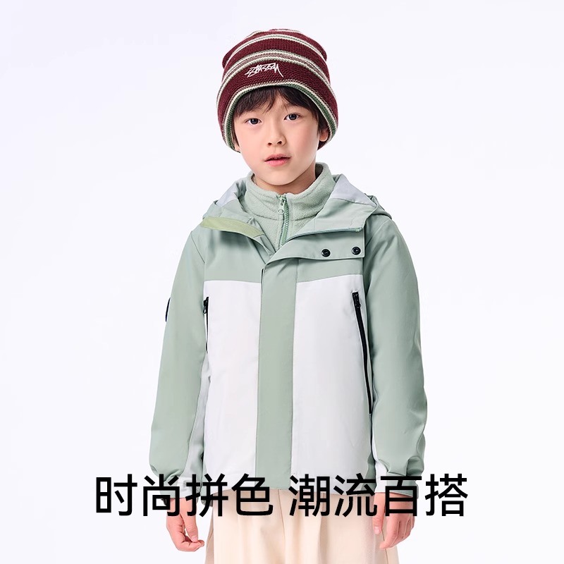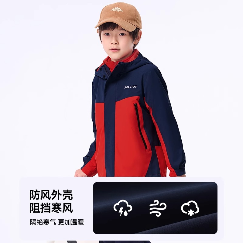 伯希和户外三合一儿童冲锋衣24秋冬新款男童防水加绒女童保暖外套