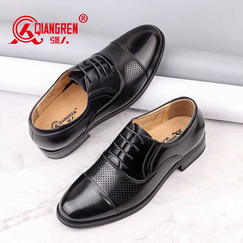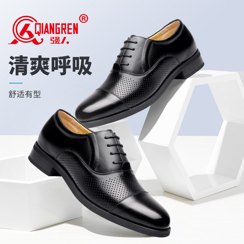 强人3515鞋正品三接头皮鞋男夏季凉皮鞋真皮商务正装三节头皮凉鞋