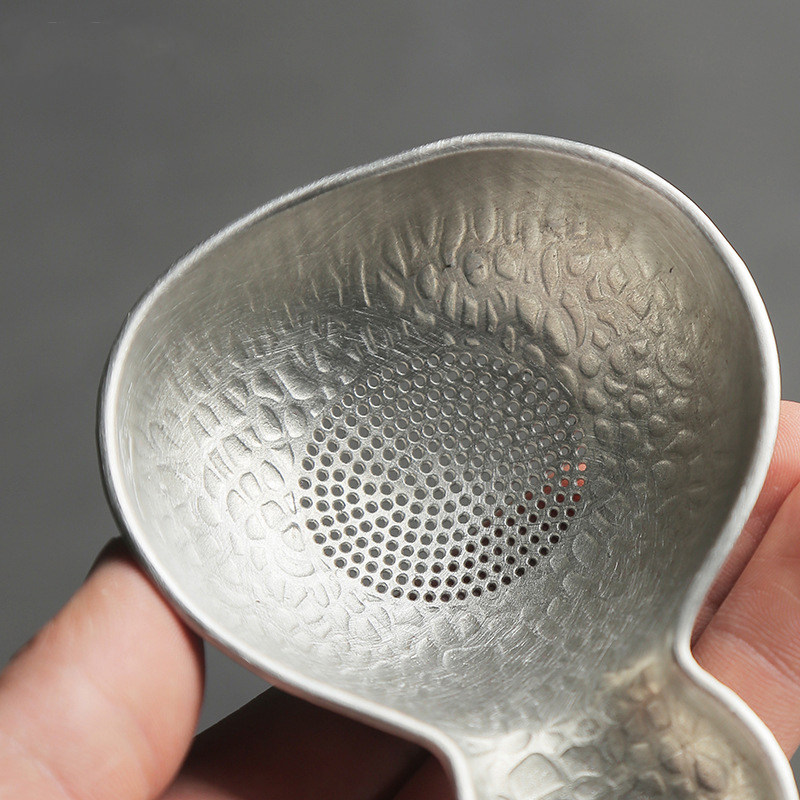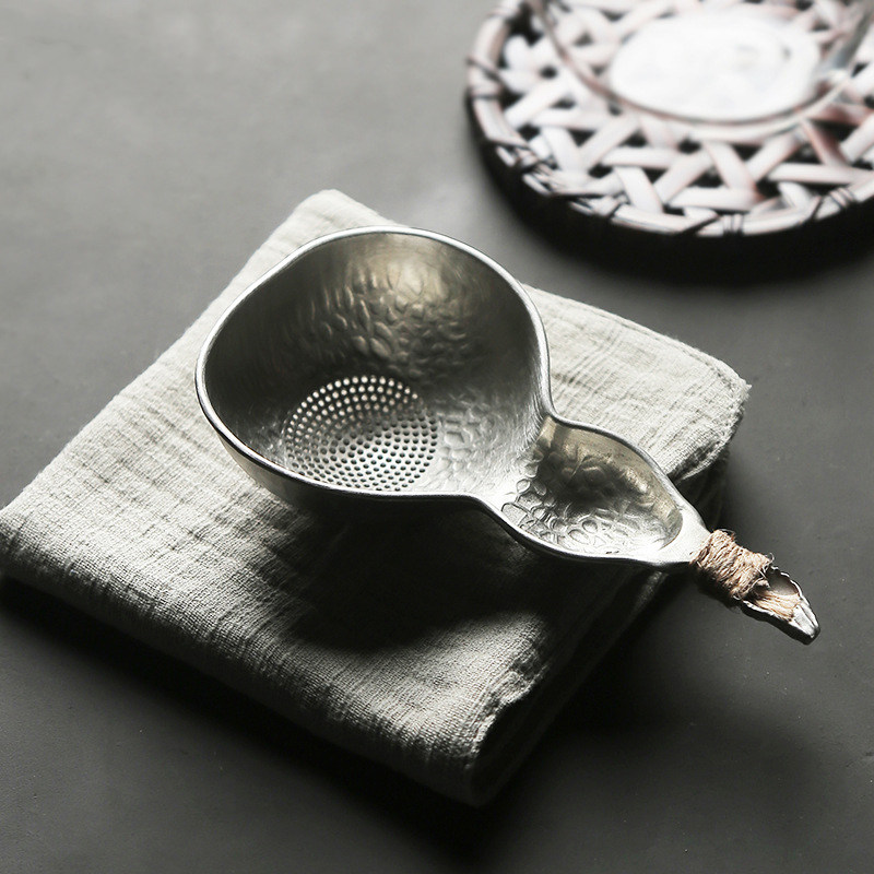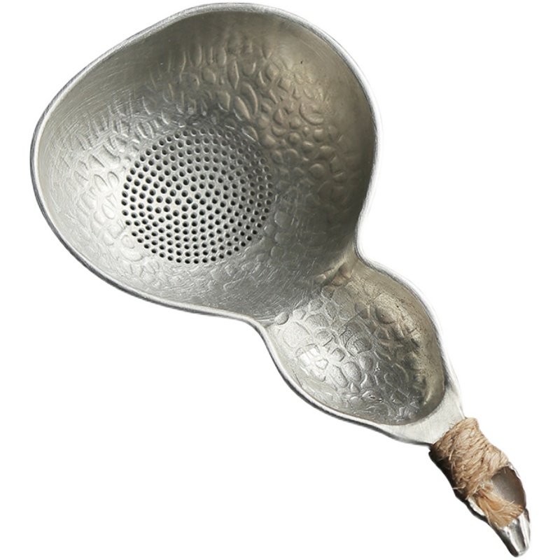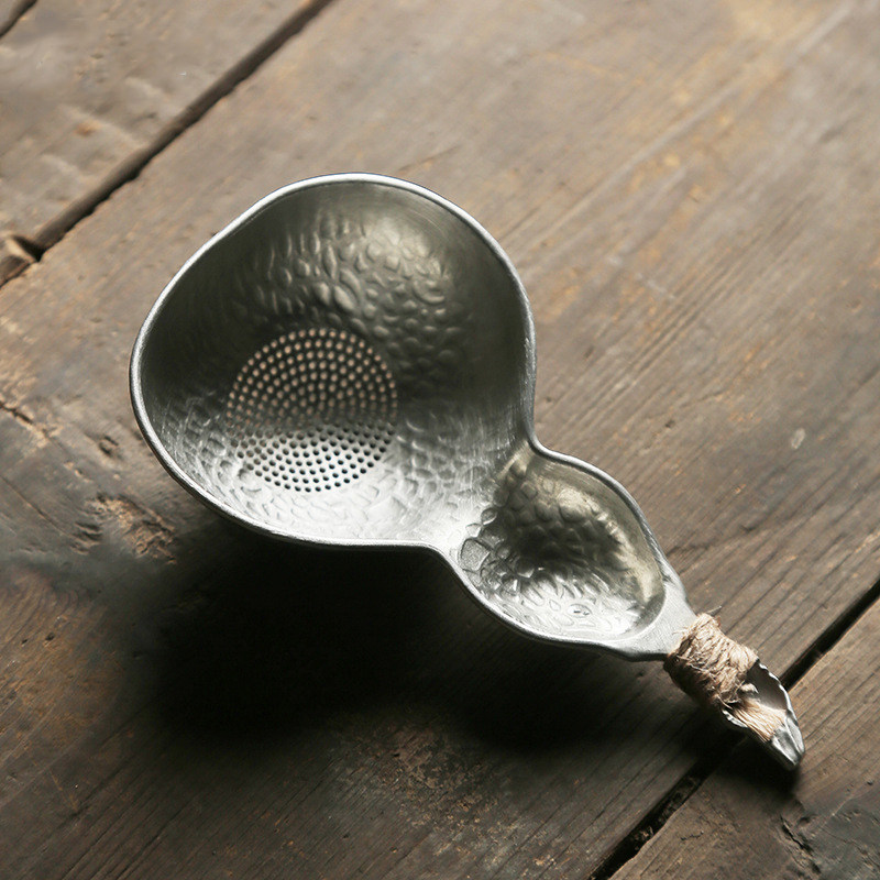 穗千堂纯锡手工锤纹葫芦茶漏 茶渣过滤器 锡银葫芦瓢形功夫茶漏斗