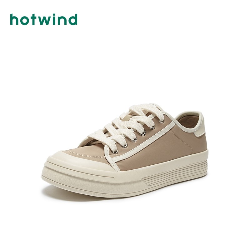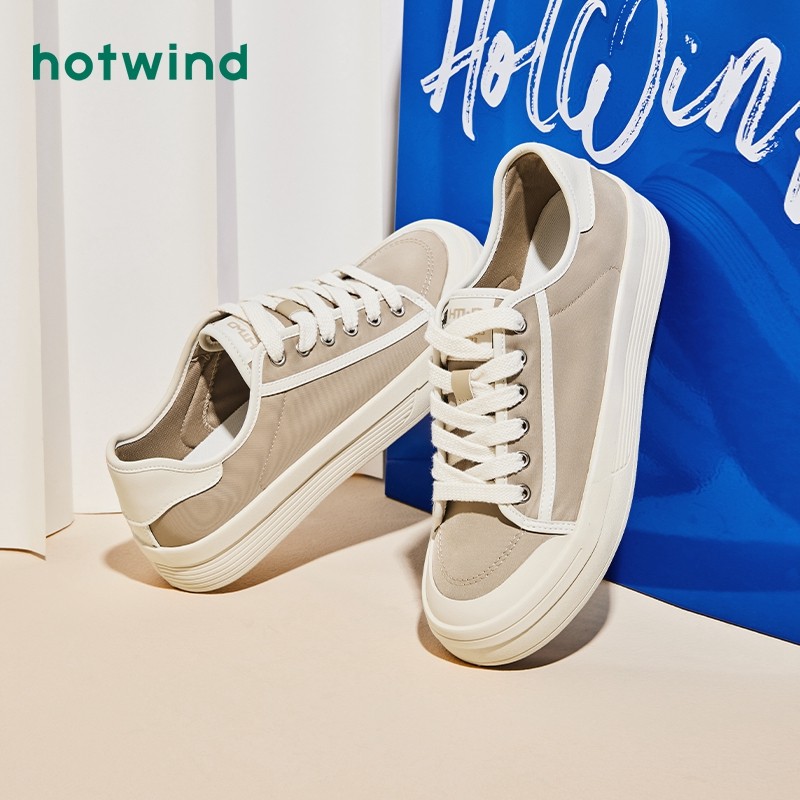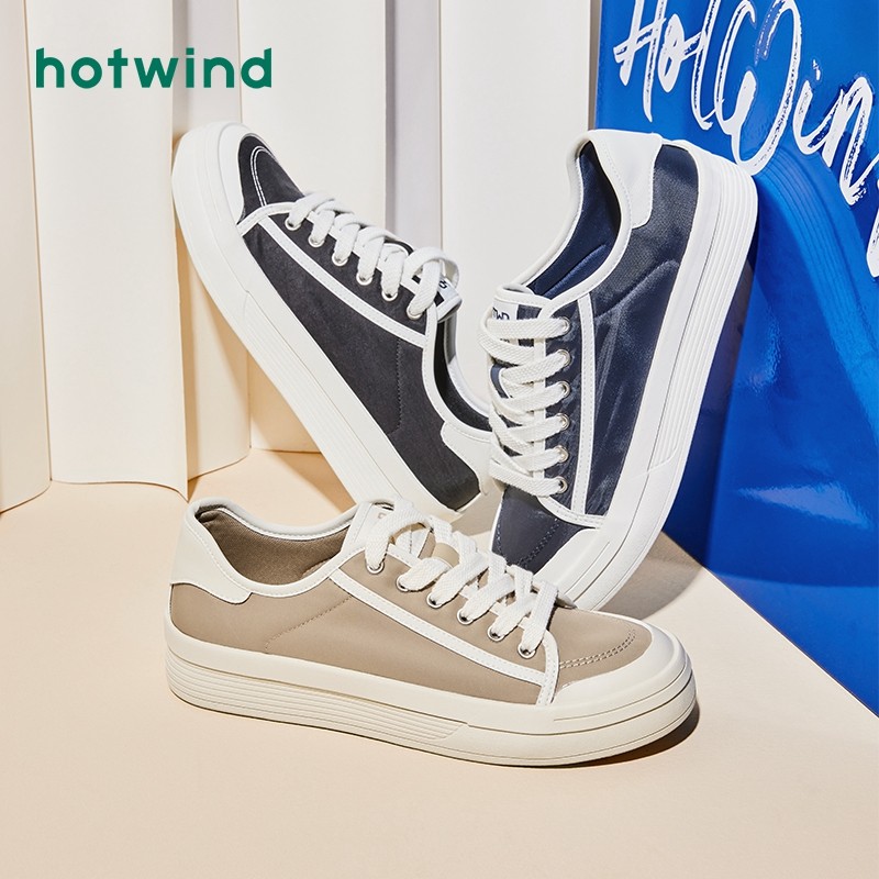 热风秋季新款男士时尚松糕底帆布鞋低帮系带小白鞋经典男鞋
