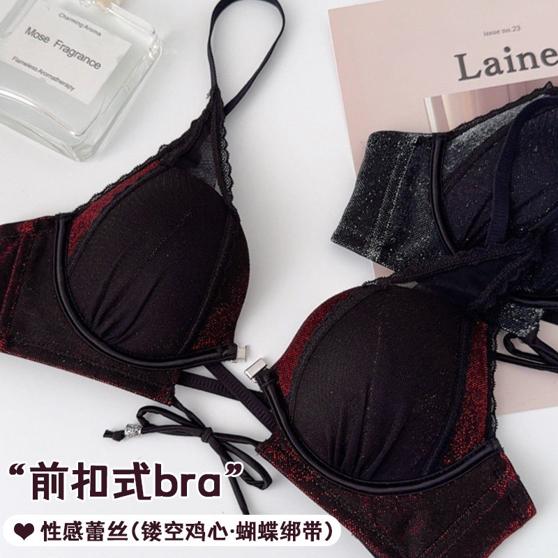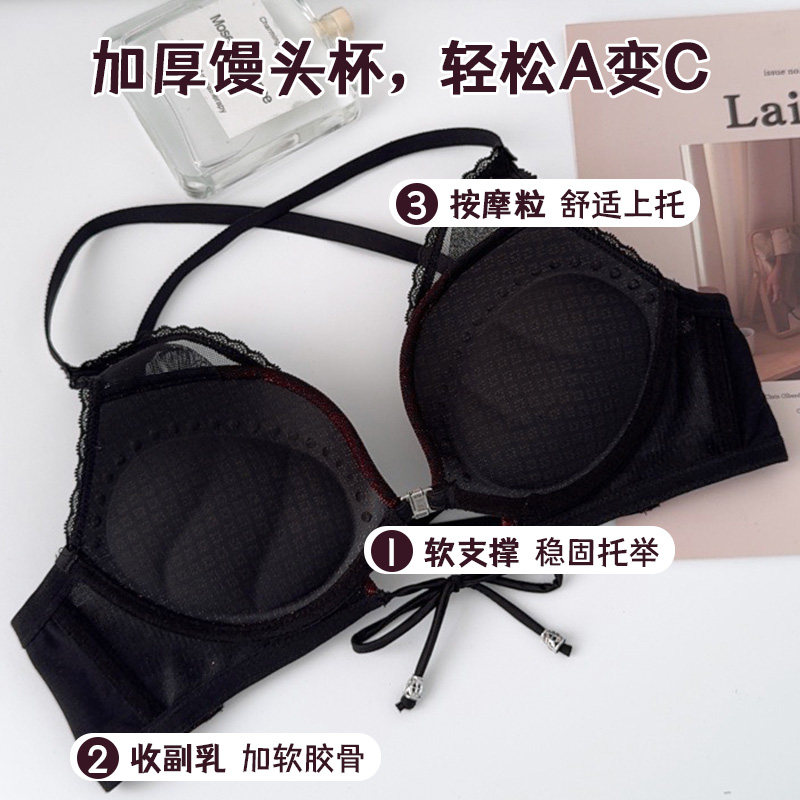 法式前扣内衣女小胸聚拢4CM加厚文胸罩超厚平胸专用显大蕾丝性感