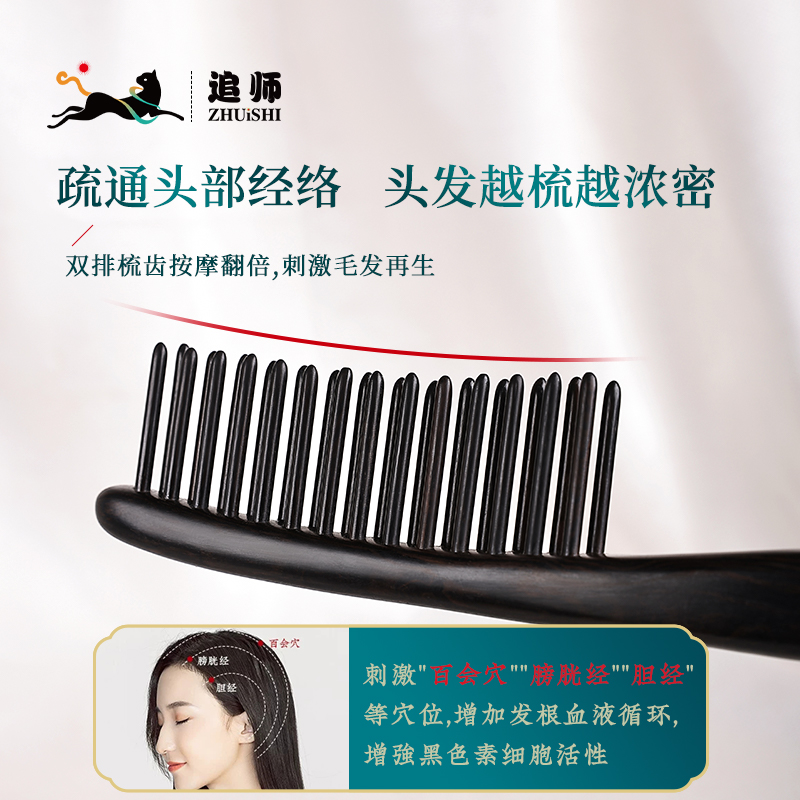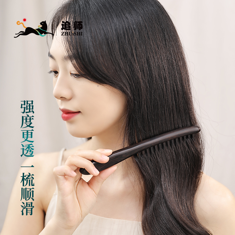 加厚绿檀木梳子家用双排插齿梳防静电梳子卷发烫发专用梳按摩经络