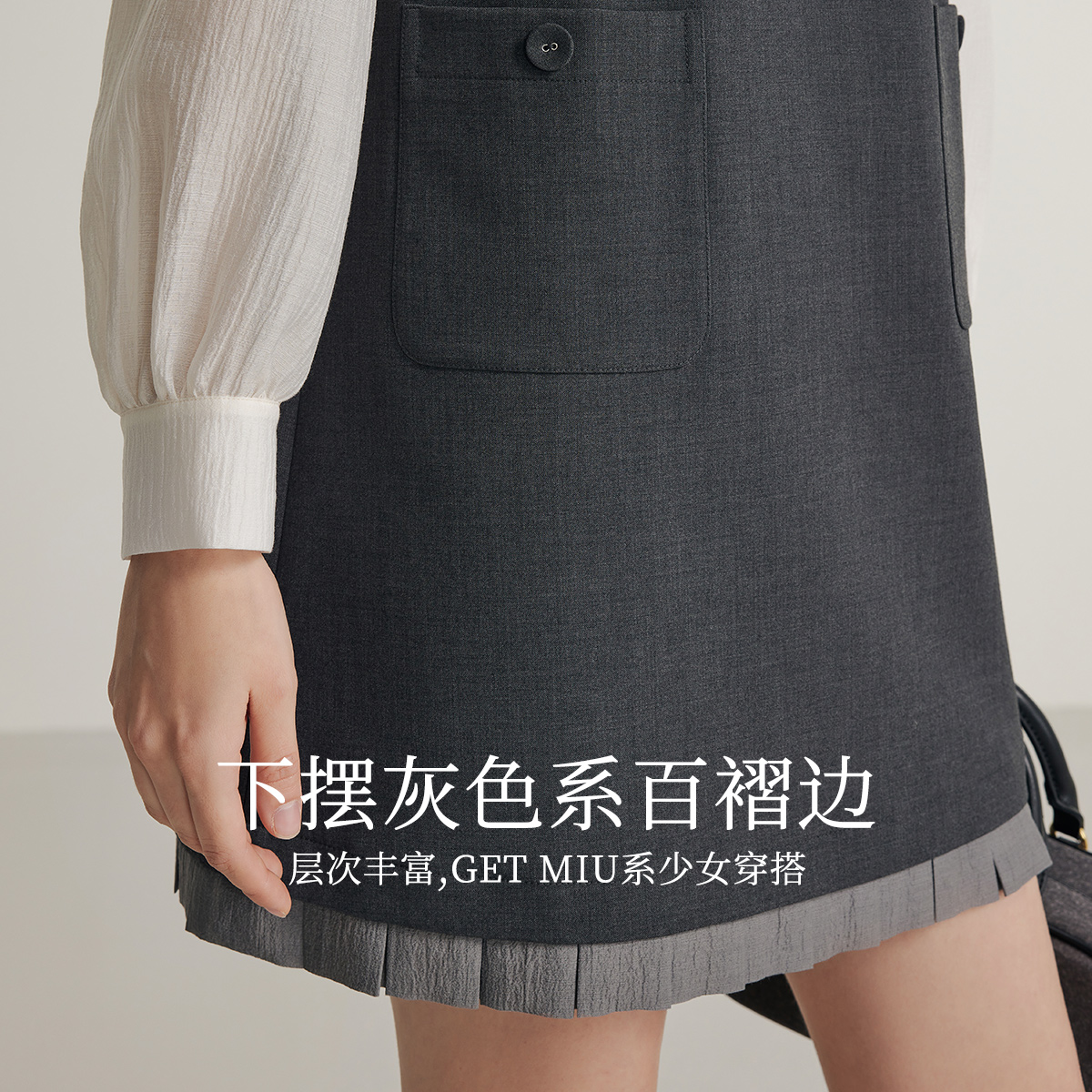 KBNE灰色背心连衣裙时尚套装春季新款上衣小个子休闲法式衬衫女装