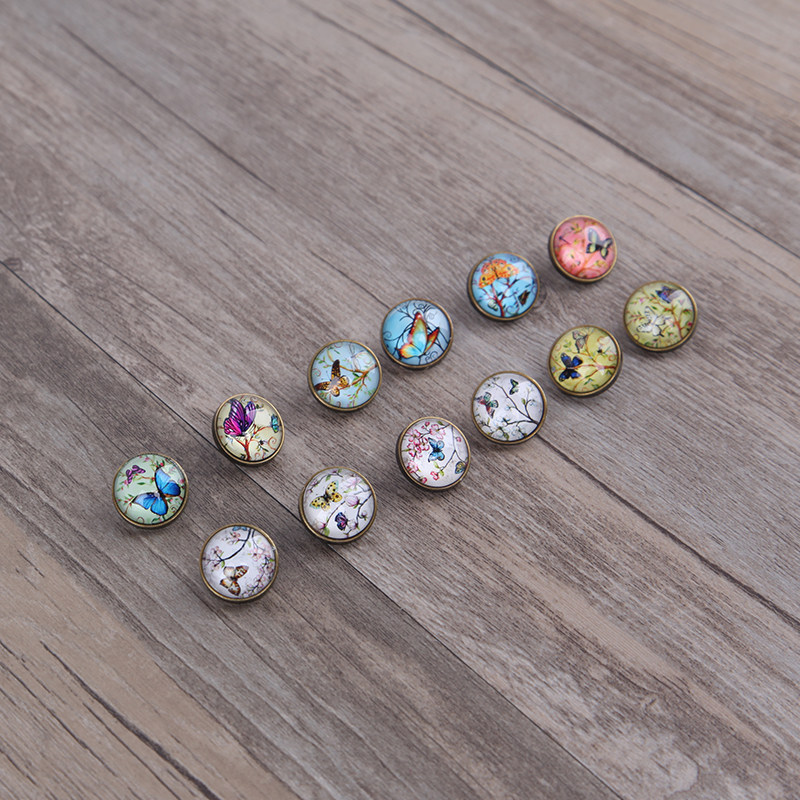 DIY手工配件 小蝴蝶花纹系列时光宝石四合扣 17MM古铜色633四合扣