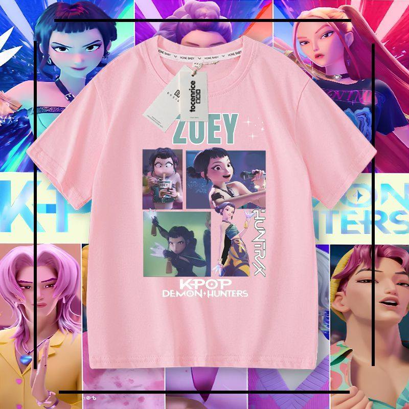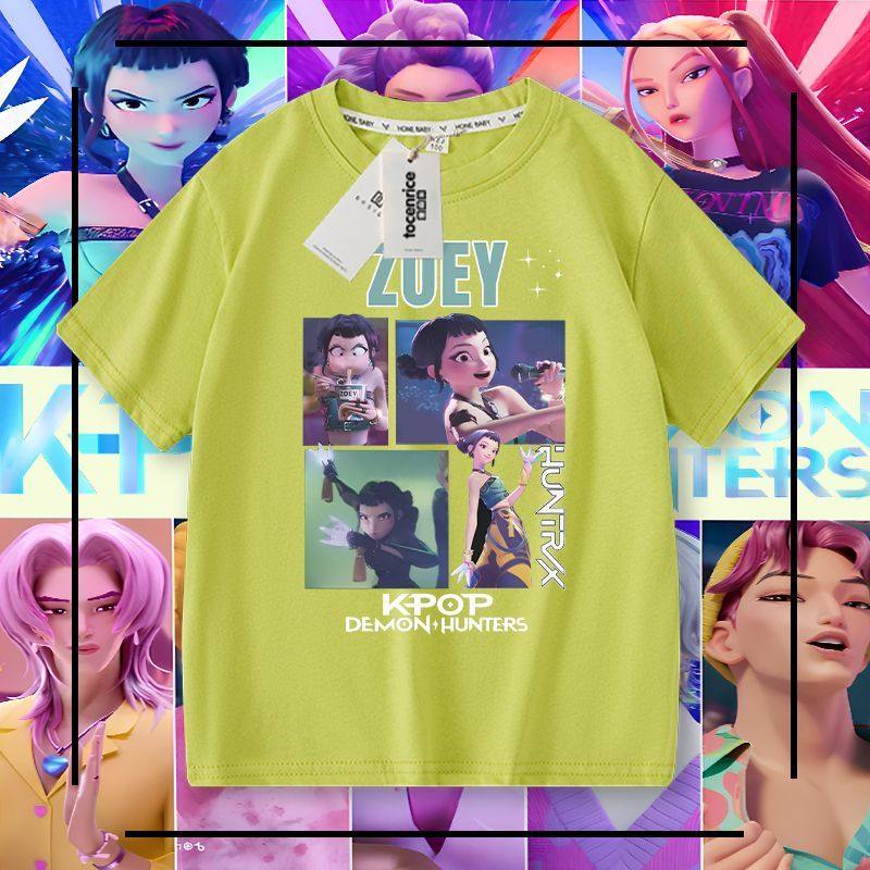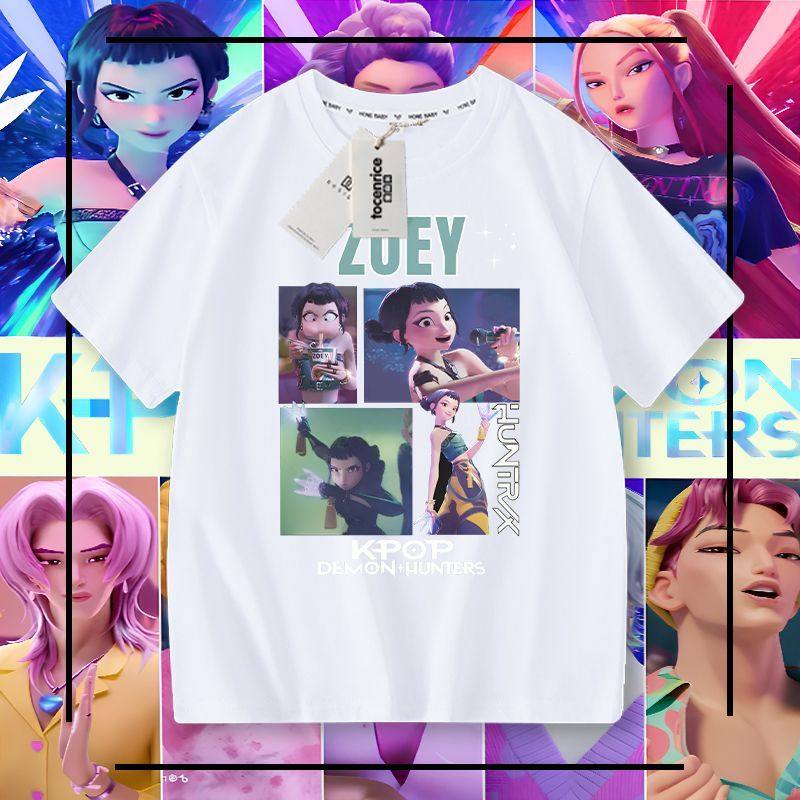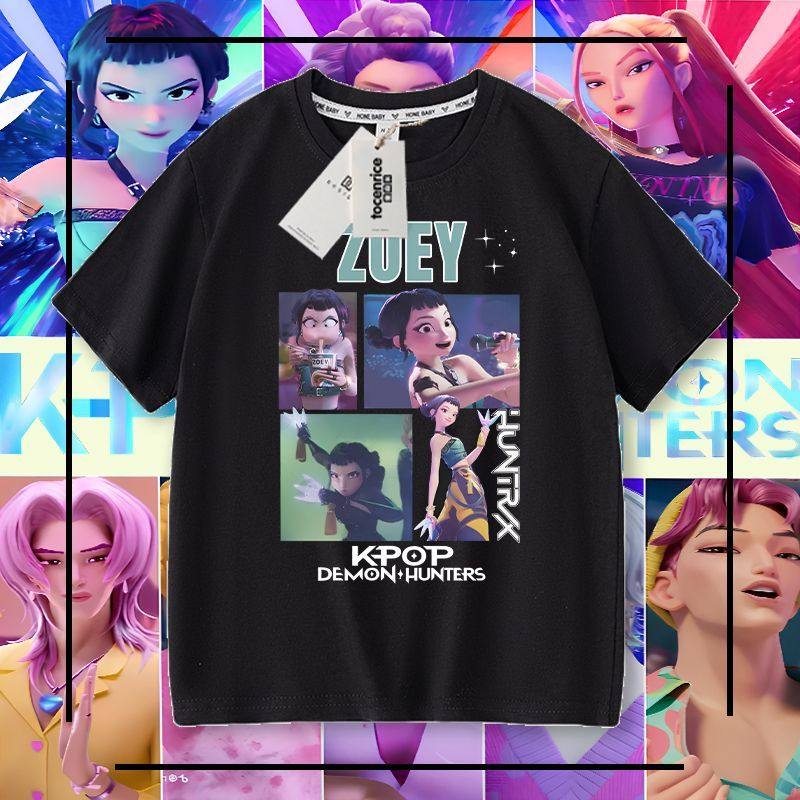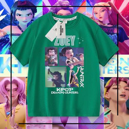 Kpop 猎魔女团男童短袖t恤纯棉夏季儿童夏装男孩大童学生百搭上衣