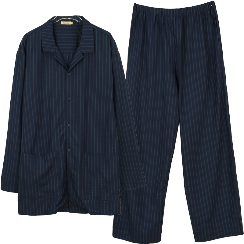 朵朵可可睡衣男款2025春秋新款纯棉混纺开衫长袖薄家居服套装