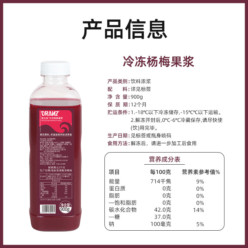 德兰兹冷冻杨梅果汁原浆杨梅瑞纳冰酸梅汤柠檬茶调酒咖啡奶茶专用