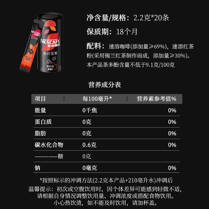 雀巢咖啡绝对深黑咖啡美式无蔗糖提神咖啡粉