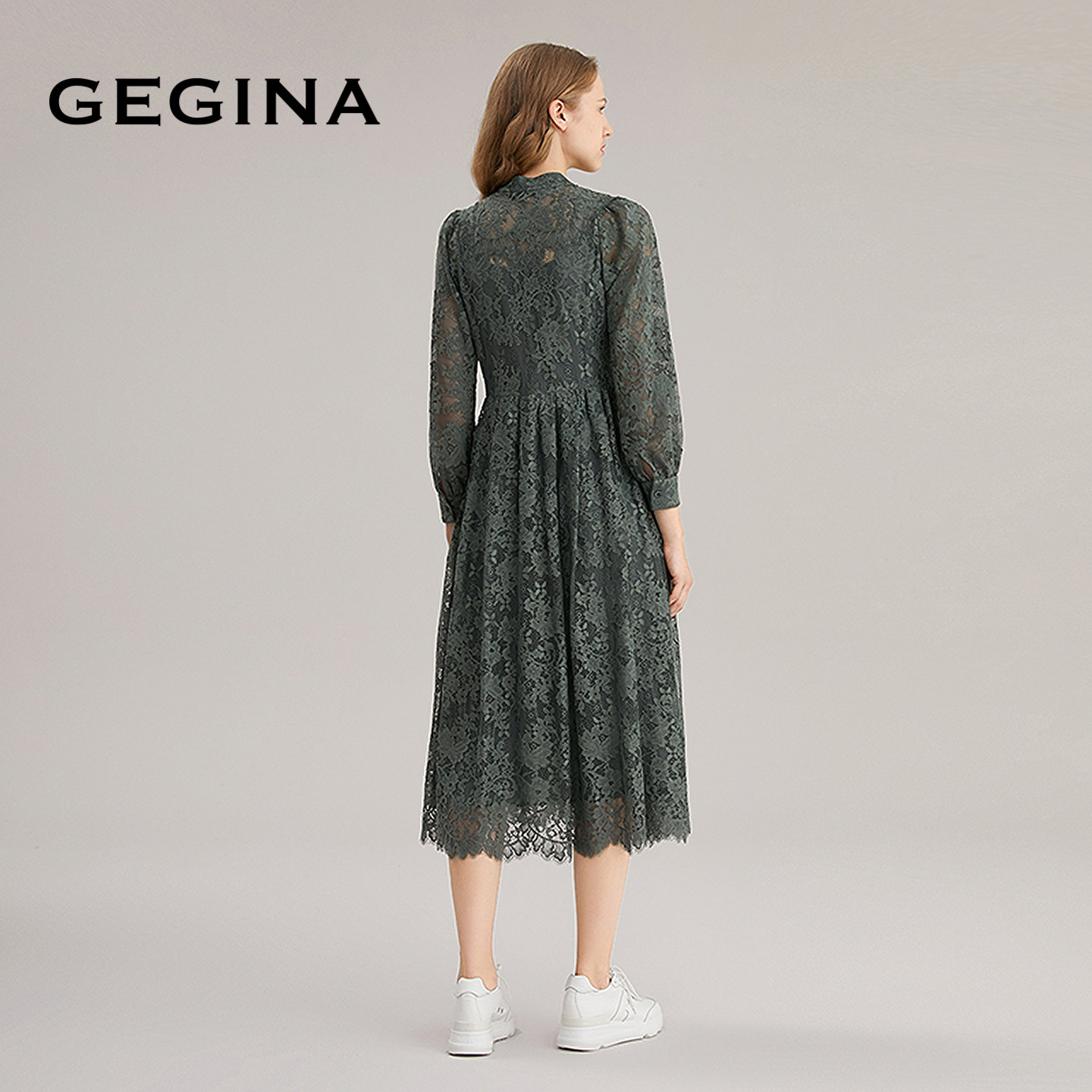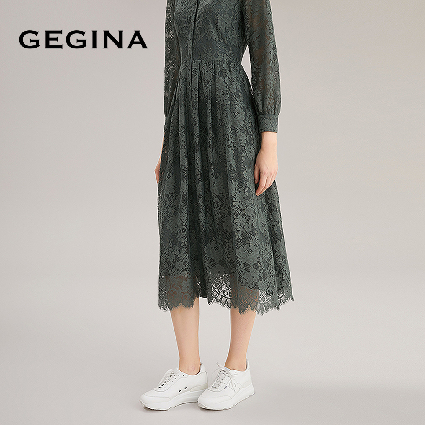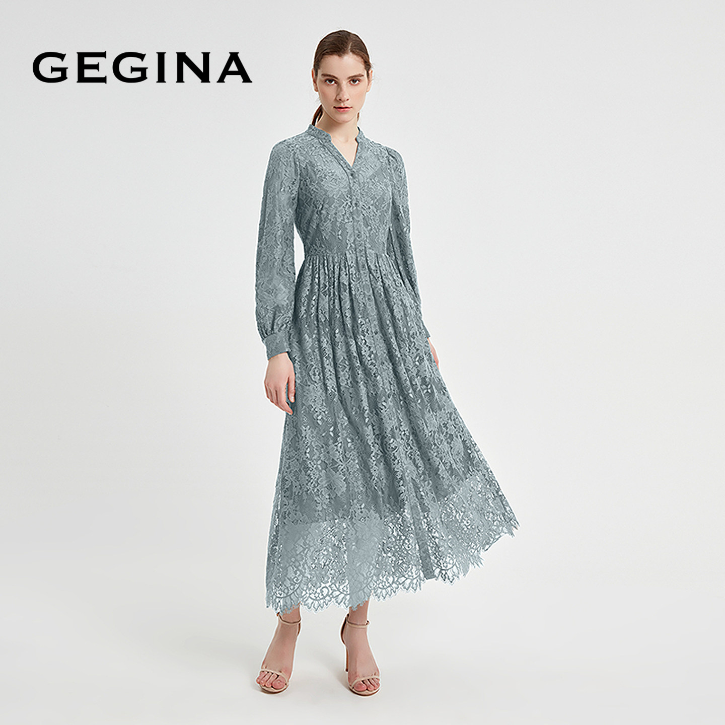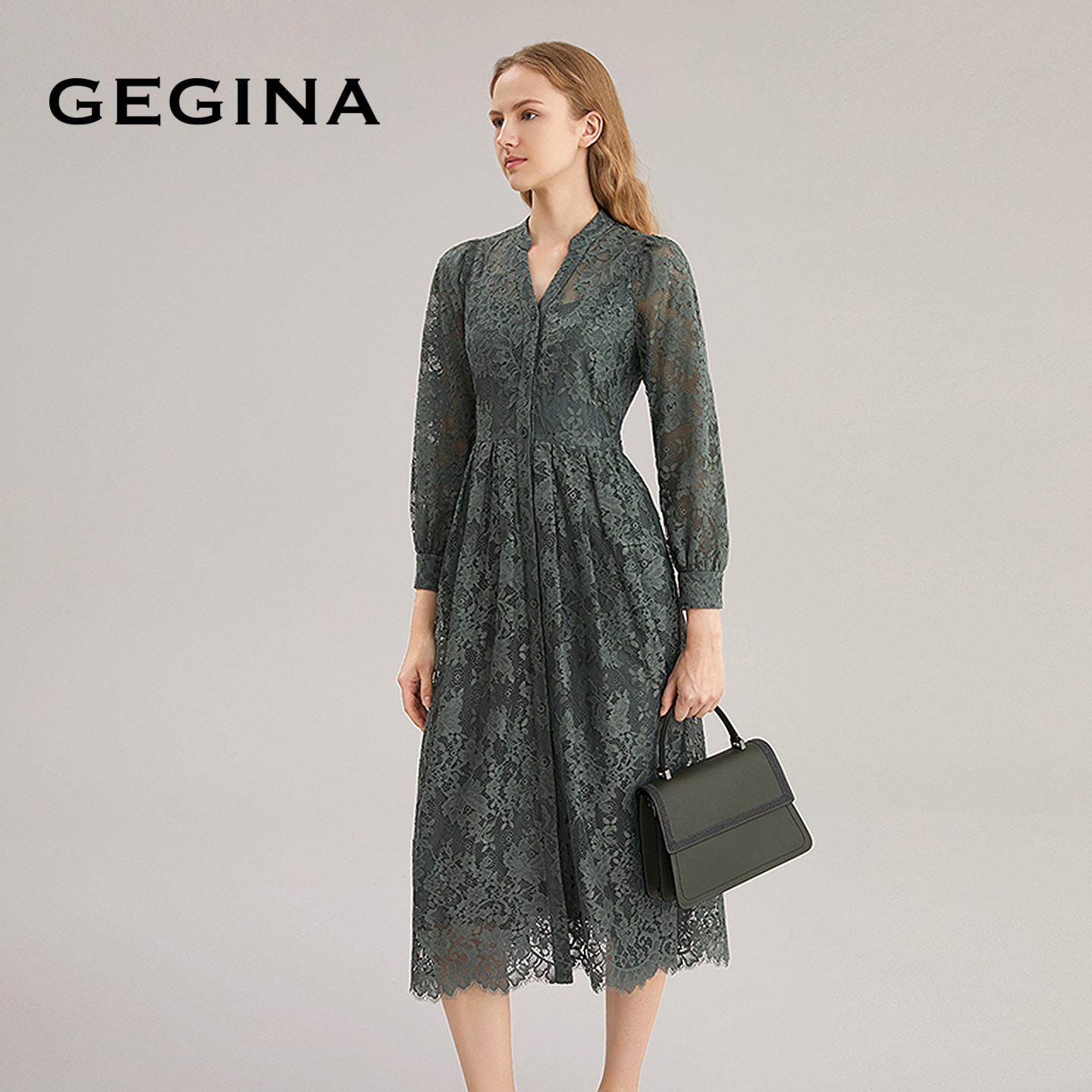 GEGINA吉吉娜新品重工镂空蕾丝连衣裙V领高级感气质裙子商场同款
