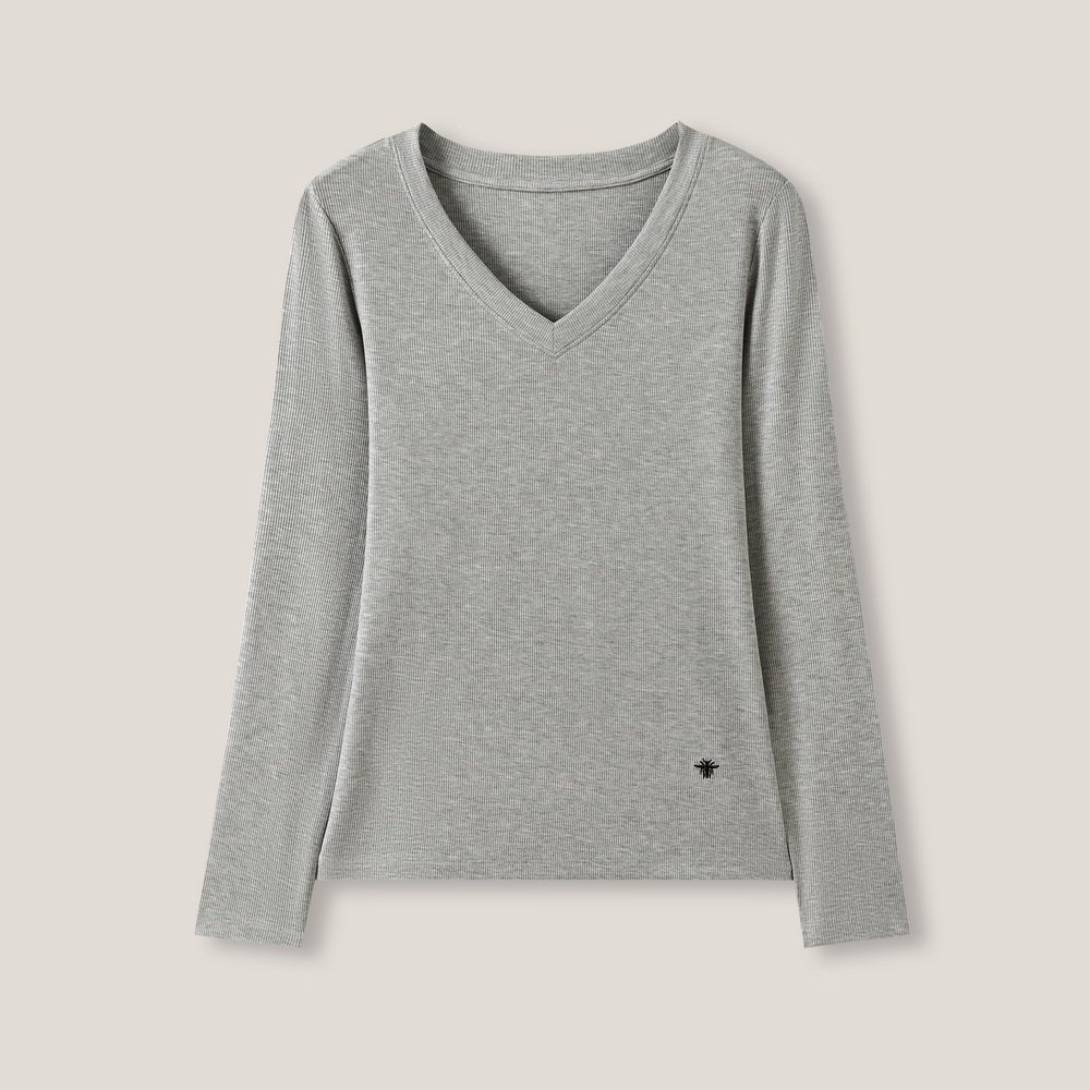 「艾薇严选」时尚百搭针织V领长袖修身T恤打底衫SS26357