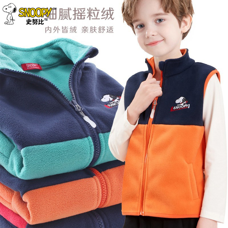 史努比童装小孩男童春秋装马甲儿童摇粒绒背心中大童宝宝女孩马夹