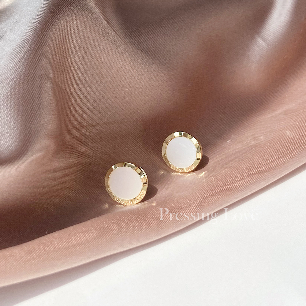 925纯银针防过敏耳钉女小众设计黑白色简约圆形耳饰送女友礼物