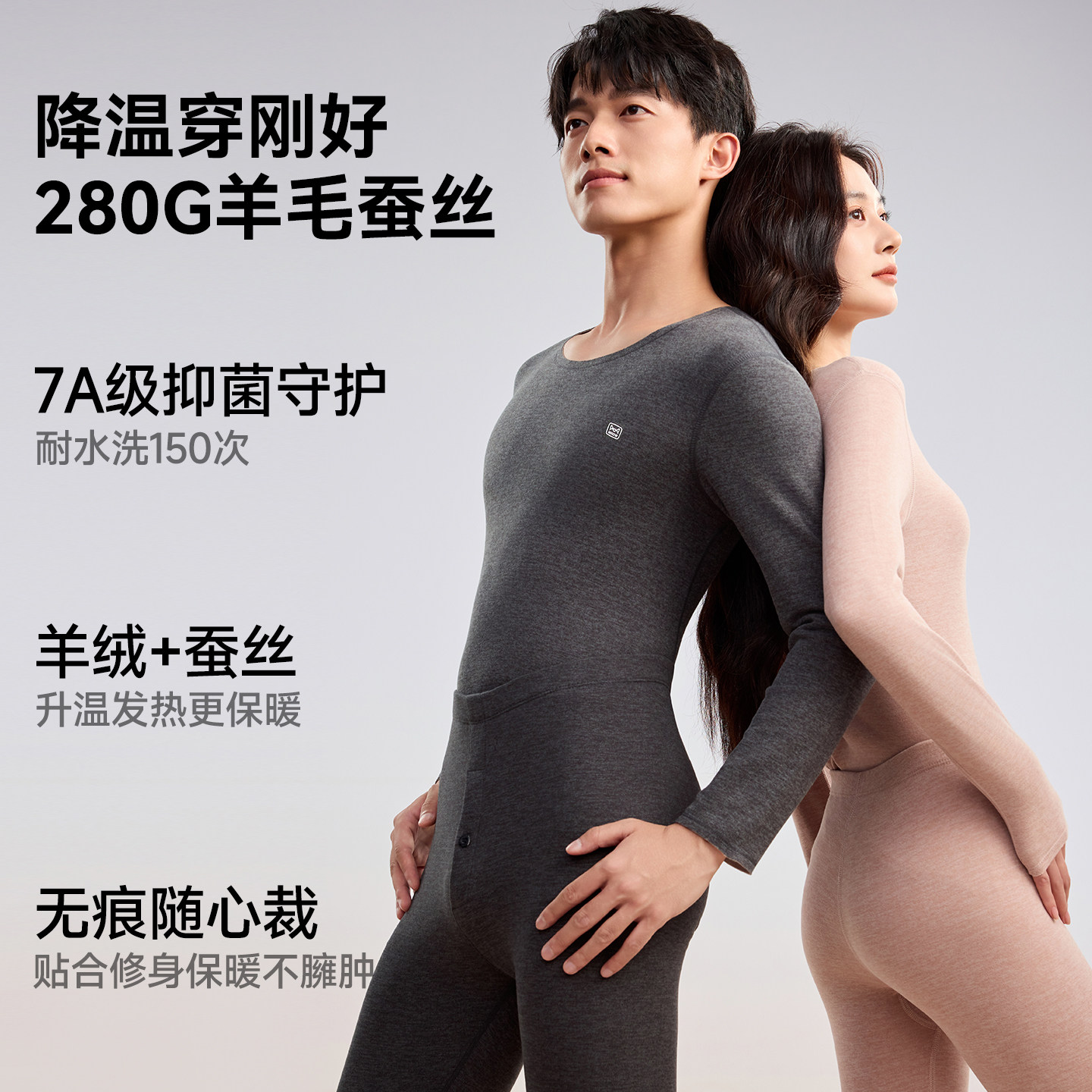 【超级年货节】猫人含羊绒蚕丝秋冬男女款秋衣秋裤保暖内衣套装
