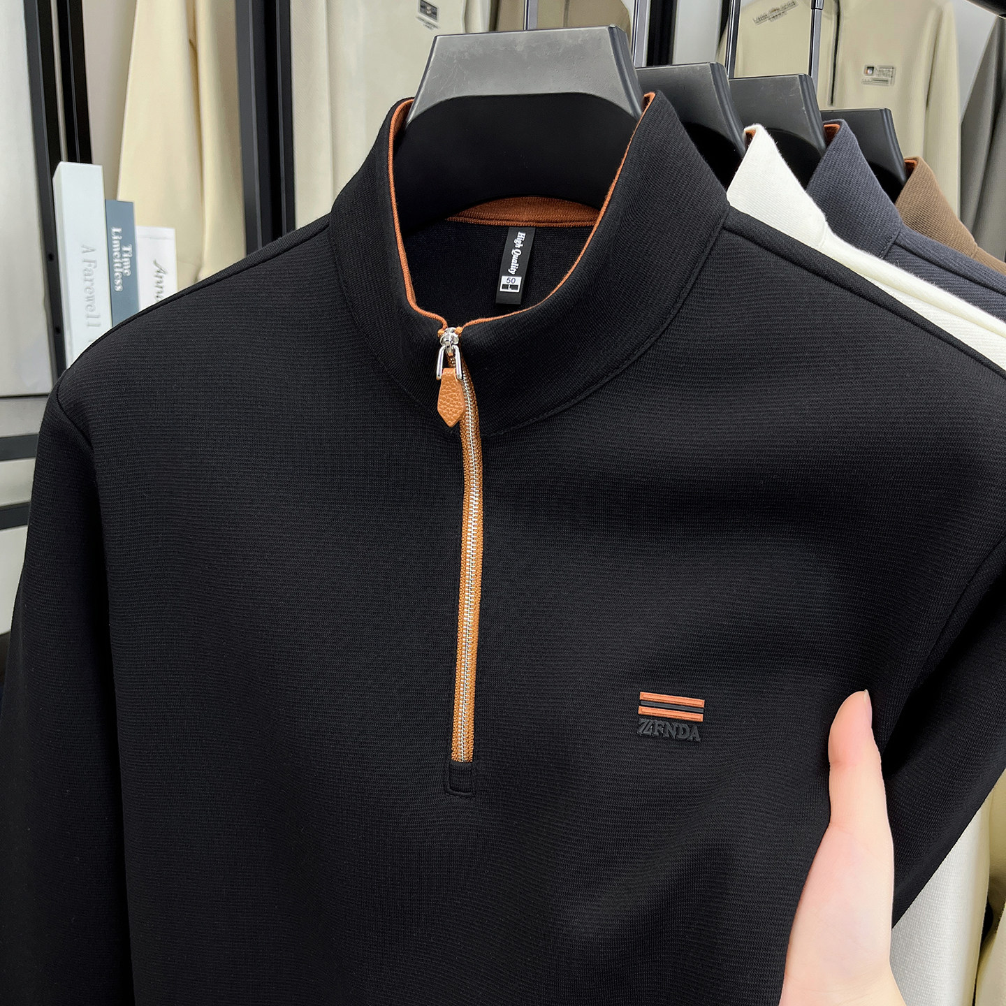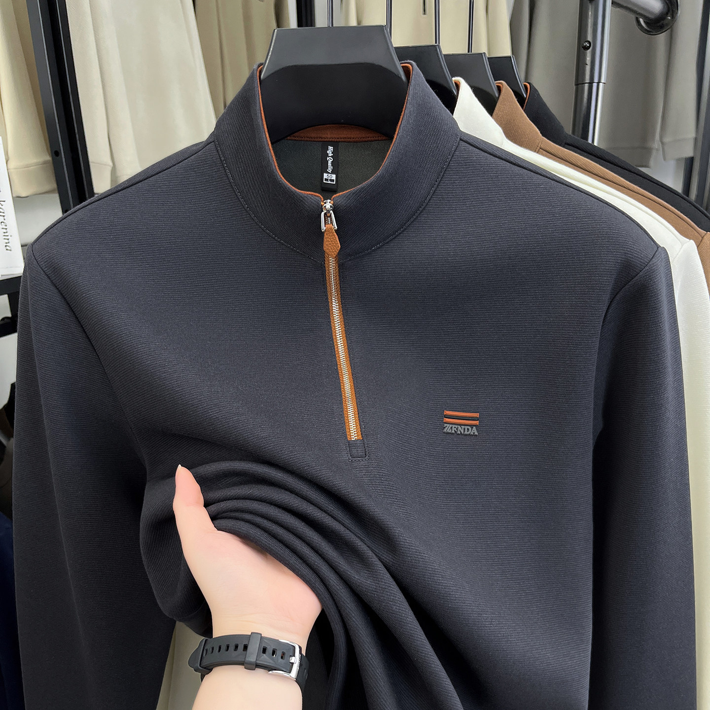秋冬新款半高领拉链加厚卫衣丝光棉长袖T恤男打底衫休闲上衣男装