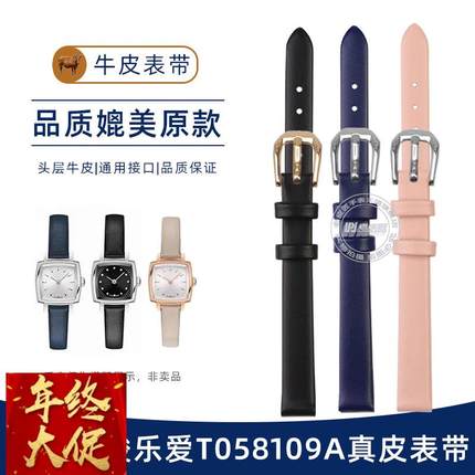 适配天梭1853乐爱小可爱小方表T058109A真皮手表带9mm女配件T099