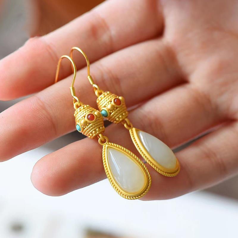 清仓特价复古玉珊瑚玉水滴耳环长款时尚个性百搭耳坠女款大气宫廷