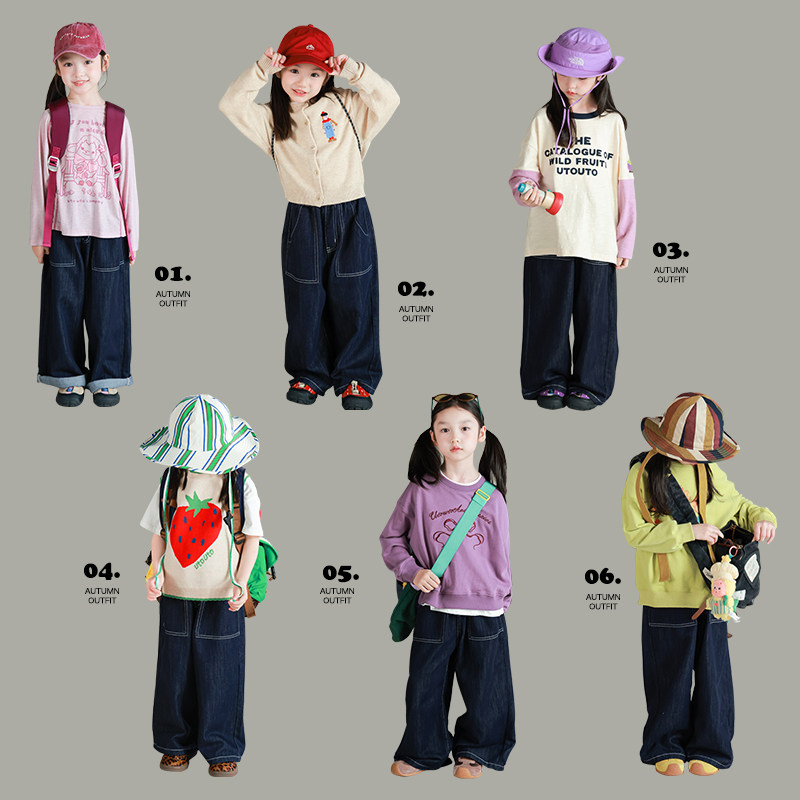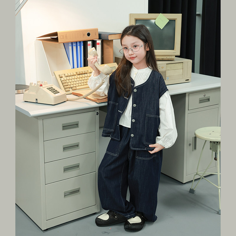 大耳象女童牛仔马甲系带休闲牛仔裤秋季新款宝儿宽松潮流休闲套装
